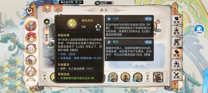 有一个地方我很无语了,都是靠被动打伤害,卫寒升级技能之后,伤害比例巨大提升,石头人的那个被动伤害以及山岳的被动,不管怎么升都没有提升。那职业装备出了之后,对石头人有什么好处,或者说加强呢,哪怕你提升一点数值也行啊,升的没用不是浪费我的资源吗,不只是天道树和职业装备来说,这个技能基本白点。