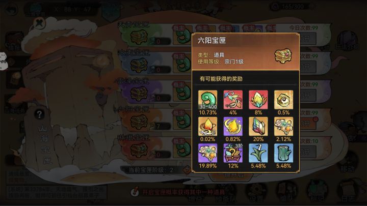 游戏里明写了山海等级会影响宝匣奖励,但宝匣概率没有任何变化。在图片中间偏下的位置有宝匣等级的文字,第一张图上个赛季的奖励概率,第二张图是这个赛季的。这个问题8月份赛季刚开始的时候我就发现反馈给客服了,客服说等待后续优化,这都快10月份了,还在优化