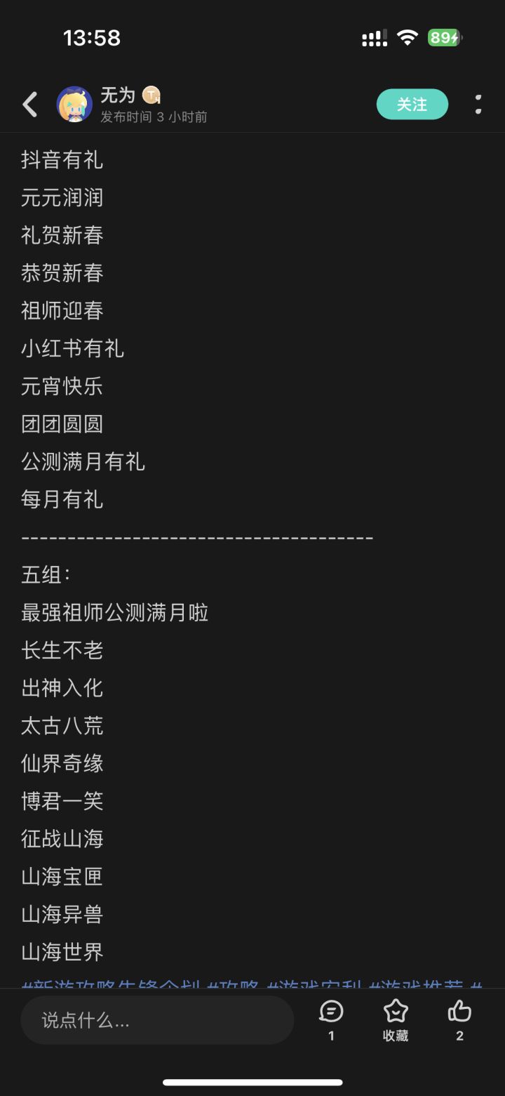 最强祖师最新最全福利兑换码(已给大家分好组,10个一组,方便复制粘贴)--------------------------------------邀请码(13级之前可用):0009HQ--------------------------------------一组:VIP111VIP222VIP333VIP666VIP777VIP888最强祖师公众号ZQZS666ZQZS