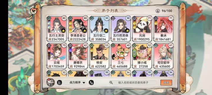 公测第一天的首发服,升升降降战力终于是到一千万了。这里和大伙儿聊聊玩这么久的心得。加速符一定要攒,留到加速活动再用。古宝优先升级红色古宝,然后就是有累积效果的古宝,套装能组就组。弟子装备法宝别一突破就把老装备分解了,可以留给二队穿,很多活动是需要二队甚至三队去打架的。客栈入住的弟子换司空这样聪慧高的弟子,这样给赞会多一点。优先解锁一个最高级的房间图纸,然后给所有房间换上,客栈古宝优先换出加