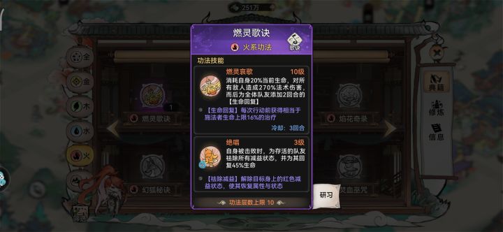 适用条件:后手、双方能互秒(大乘阶段)思路:工具人由于双速画的职业技能和控制功法除了减益之外,还存在一段伤害,我们的反制以此伤害为契机。需要用到功法【燃灵歌诀】和【碎灵恶咒】/【风灵歌诀】。其中①【燃灵歌诀】(拓印获得)必备,其被动效果是被击败后祛除队友所有减益并回血。核心思路为使用低属性工具人放在前排位,当双速画释放技能后,其被击败祛除所有减益。②【碎灵恶咒】(仙友好感度)选配,其被动