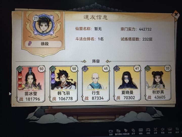 首选最低要求就是要有天阶天命的剑修。因为伤害要够,不然我这套打法抗不住几个回合。其次要有法宝寒铁,最好红色,不行就橙色。我的整容是2剑1医1隐1和尚。如下图可参考,我主c带的修罗,如果有两个寒铁法宝完全可以在出第一次法宝技能的时候秒掉两小猩猩,然后第二次寒铁就可以秒掉两个大猩猩,就轻松过关了,我没有所以伤害差点。功法也可以参考我的,主要是群冰封群嘲讽,在加上两个前排眩晕,法宝一定要两个斗