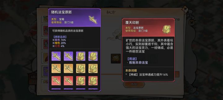 我承认你李清圣开局瞬秒我前排很nb, 但是你只有一瞬的爆发,不足为惧, 且看刀修轻松拿捏 (版本之子,刀修,极高的爆发,疲软期短,可能没有回血是最大的短板) 前期的古宝是过渡拿个本体即可,有更好,没有也行,主要是提升队伍的质量 后面队伍质量上来了,可以挑一下nb的古宝, 加抵抗的,加暴击率的,加攻击和闪避的,有时候留几个保命的法宝也很不错, 红色有一个是每次承受伤害不超过30%,但被三七克制, 橙