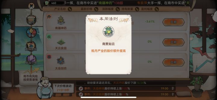 商店优先兑换(建议)尘缘商店:师门令 天命灵魄仙缘商店:混沌天命 天命灵魄仙盟贡献:琅璃花 星辰石英仙盟战功:道兵仙盟地宫:当前缺啥换啥论道商店:残日>刑天>乘风跃龙阁:强化鱼线(深海钓鱼轻松领满奖励)锁妖塔:优先烈阳 春风化雨斗法商店:天命灵魄许愿商铺:灵叶不会清空 优先换攻击古宝股市:看法则梭哈股山海:没高战就别采集了 打2级怪 捡漏3级牢狱:极品就招募 招不到就抓