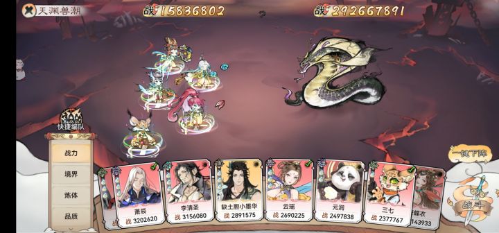 游戏阵容要求5个弟子,个人建议前排禅修两个后排:剑修,剑修 舞姬云瑶,氪佬:银无月,五行禅,剑修,画家,云瑶开始就随便玩,可以先用天命高的,弟子可以花费灵玉传功,丹药不算浪费,混沌灵魄不要随便用,传功后会变成弟子的灵魄,普通的天命灵魄可以随便用,传功后会返还禅修:前期可用免费送的熊猫,后期更换五行禅:带有五个灵根,带有天命【“禅心”:战斗开始时可获得一回合果免疫】,功法推荐渡魂歌诀(可换为风魄