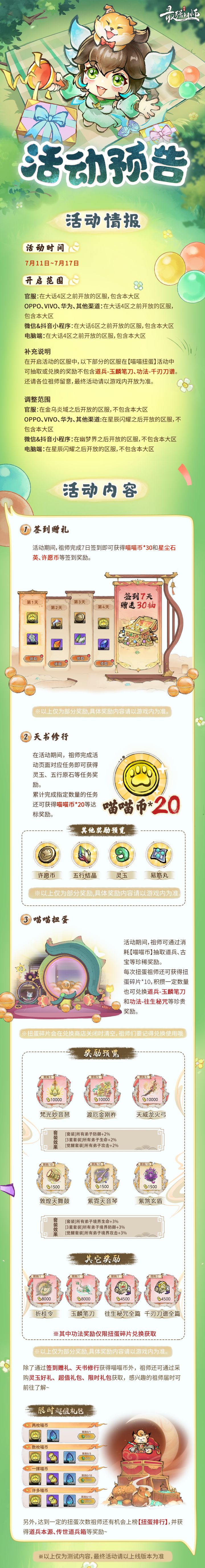 为了给各位祖师带来更优质的游戏体验,宗门将于7月9日7:00-8:00对所有大区进行停服维护,整个维护过程预计需要一个小时。维护结束时间将根据实际情况提前或延后,给您带来不便敬请谅解。【新增内容】 1.1 新增“天命觉醒”功能大道无涯,天命无边。今有仙缘弟子李清圣与元润,蒙大道垂青,受天地眷顾,终悟得天命觉醒之玄机。二人得获全新天命神通,威能倍增,直指无上大道之境。※本次开启“天命觉醒”