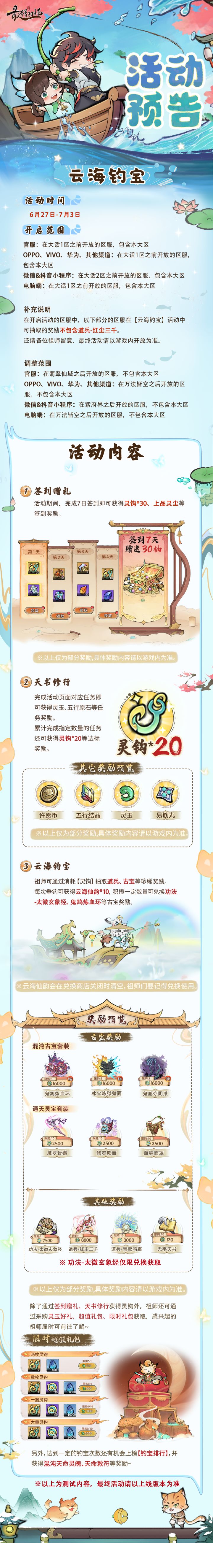 为了给各位祖师带来更优质的游戏体验,宗门将于7月16日7:00-8:00对所有大区进行停服维护,整个维护过程预计需要1小时。维护结束时间将根据实际情况提前或延后,给您带来不便敬请谅解。※ 部分官方区服将要进行合服操作,停服时间为7:00~9:00,请大家以游戏内通知为准。【新增内容】 1.1 仙盟地宫新增“地宫密令”投资活动。※“地宫密令”活动会跟随仙盟地宫开启和关闭,每次开启时会重置密
