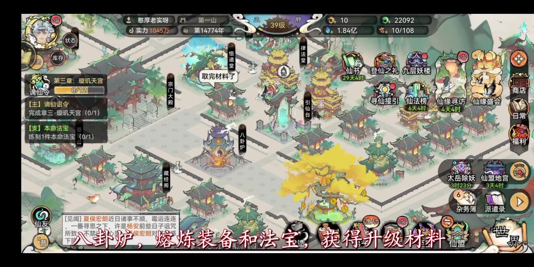 采用ai配音,请谅解,大致内容都有介绍,有兴趣的可以等公测试玩一下。 游戏游戏里除有些功法和道兵需氪金购买,其余都可以积攒材料抽取。#新年新安利#游戏安利#游戏推荐#攻略