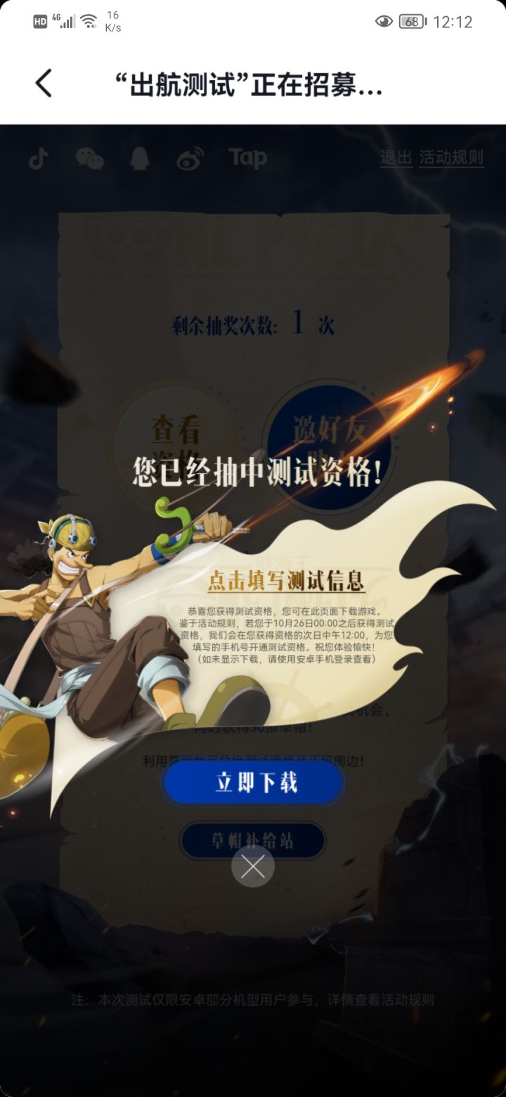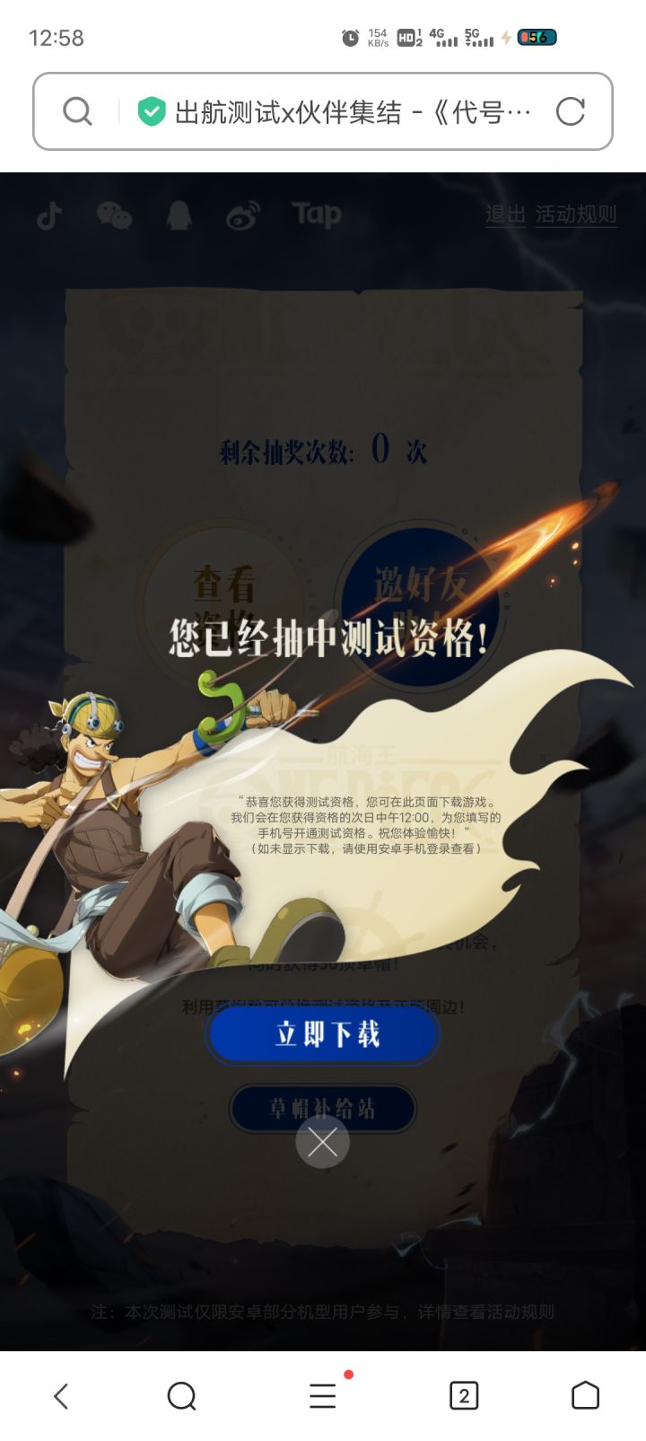 我卡12点都兑换不了,这草帽攒的意义在哪?搞出这样的活动你不把测试资格准备多一点,让我们这种没有一开始搞到测试资格的人那还能有机会参与这次的测试,真不明白你们这些活动策划脑子咋想的。