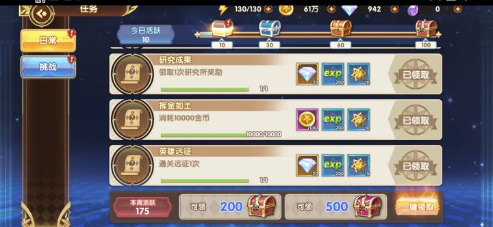 今天的活跃度为10????任务都做完了,望修复一下!!!!ID:7021001001054