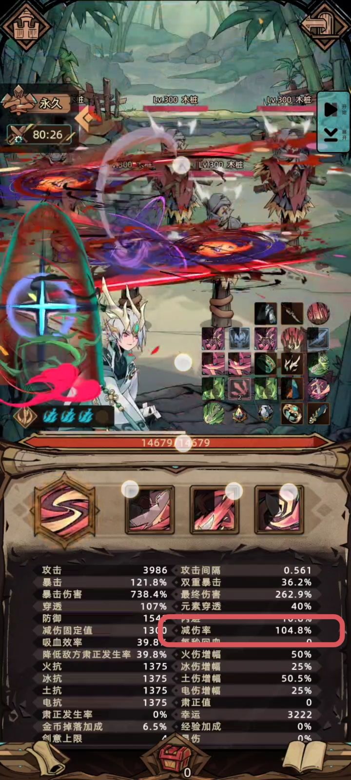 起因是群友提出刀的减伤,能不能减伤到怪打不死,我觉得很有趣,研究了一下发现可以做到一定时间内的百减先贴装备武器之类的选择,玩法我后面再详解——————————效果图——————————装备一览此处戒指应为龙戒,我这个档是为了测试极光才选择,不要选错了!!!——————————头、脚蜃龙套掉落地:全图,建议自己造词条要求,两件均要有全等2和3孔,其余词条可以选择攻击间隔衣服手