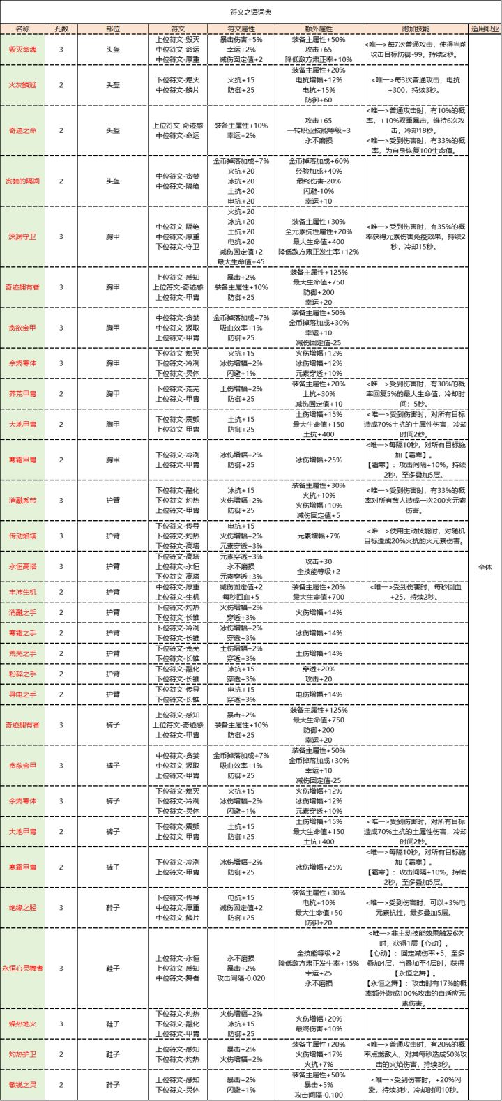 做符文之语所需要注意的事情:装备底子必须为白色或者蓝色。装备孔数必须和所需要做的符文之语装备所需要镶嵌的符文数量一致。符文必须按照符文之语顺序填入或者使用符文词典一键填入。更多制作符文之语的详细攻略请跳转通用防具符文之语查询表通用饰品符文之语查询表骑士符文之语查询表魔法师符文之语查询表游侠符文之语查询表魂术师符文之语查询表蛮灵斗士符文之语查询表流浪剑客符文之语查询表上述符