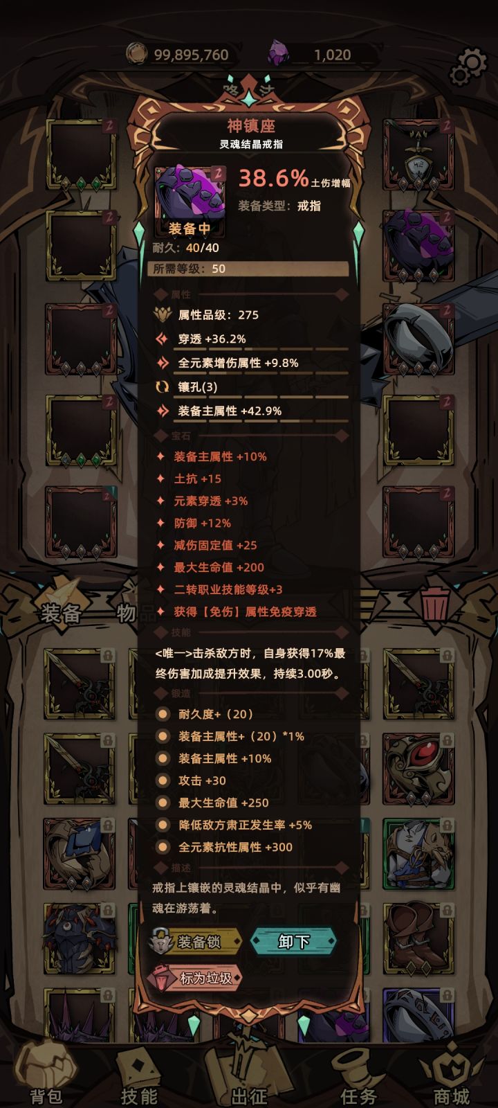 本攻略为亡灵的枪魂流攻略 主打的就是枪魂输出 头盔 优点:高额的加攻并且带三孔 缺点:其他词条属性太低可替代优点:有暴击与吸血 装备技能在双宝宝下增加高额终伤与全技能增伤缺点:无孔 并且枪魂流一般不会上两个宝宝 上装词条优先级为 孔>爆伤>血量/攻击/暴击护手词条优先级为 孔>主属性>血量/攻击/爆伤/暴击下装词条优先级为 孔>爆伤>血量/攻击/暴击鞋子优点:全技能5#传说2神器新版本攻略