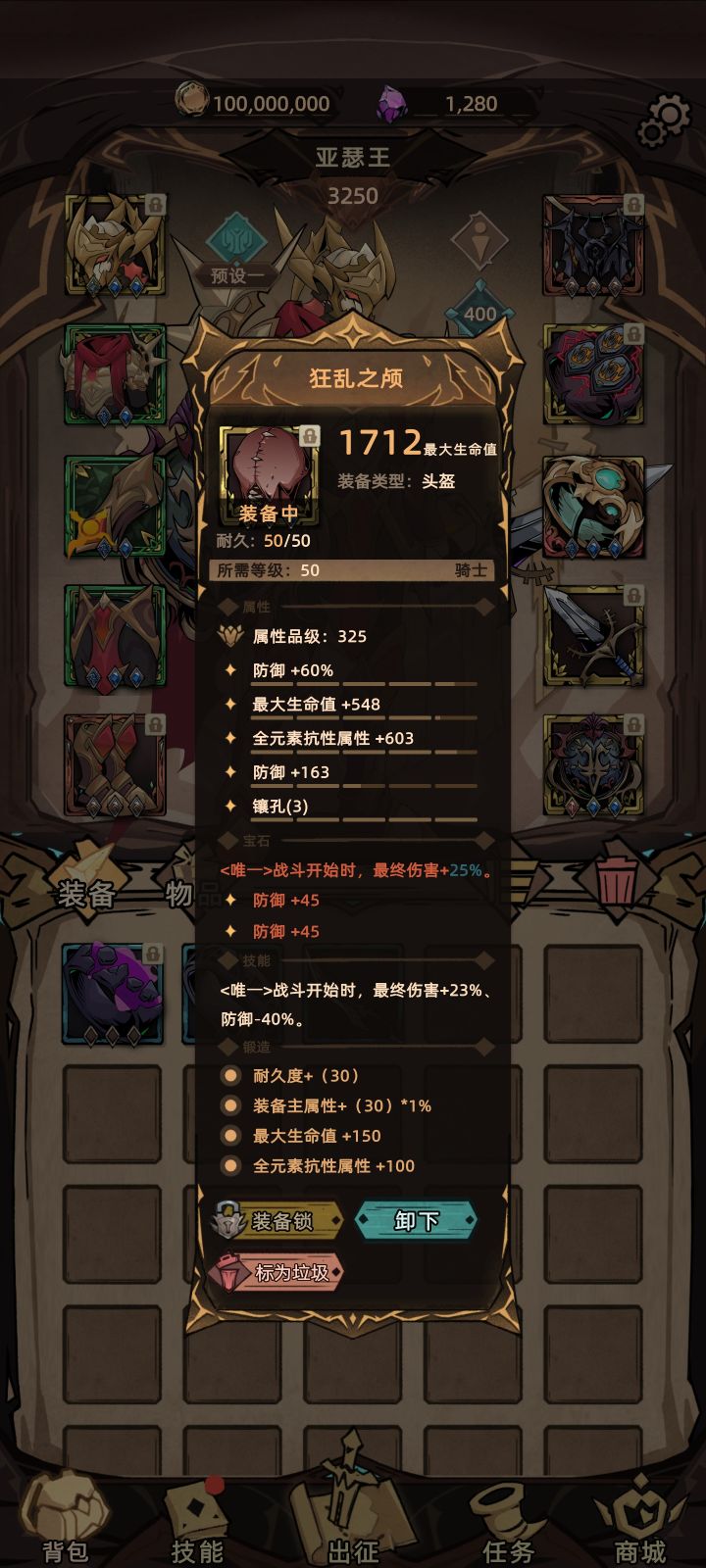 王国守护总体技能都是以防御为主 而且套装后可以普攻触发最终技能 较为强力 本次攻略分为极光套和莲花套 主要是为了区分神器 头盔:优点:高额的最终伤害加成和防御加成(60%加防是直接加成面板上享受各种buff加成)附带三孔 缺点:无获取方式:全地图暗金掉落与暗金锻造——————————————————————衣服/护手/下装均选择套装 上装与下装词条优先级:孔>主属性/全技能(看自