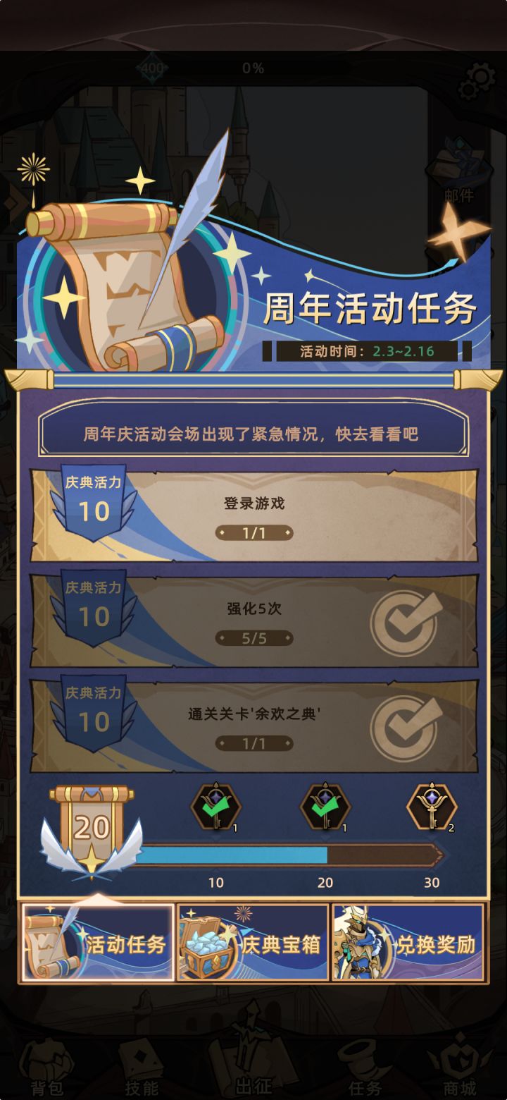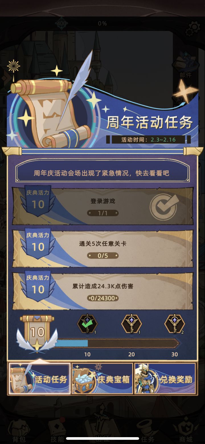周年任务还能卡住成前一天的吗。盾勇的人物和别的人物不一样啊