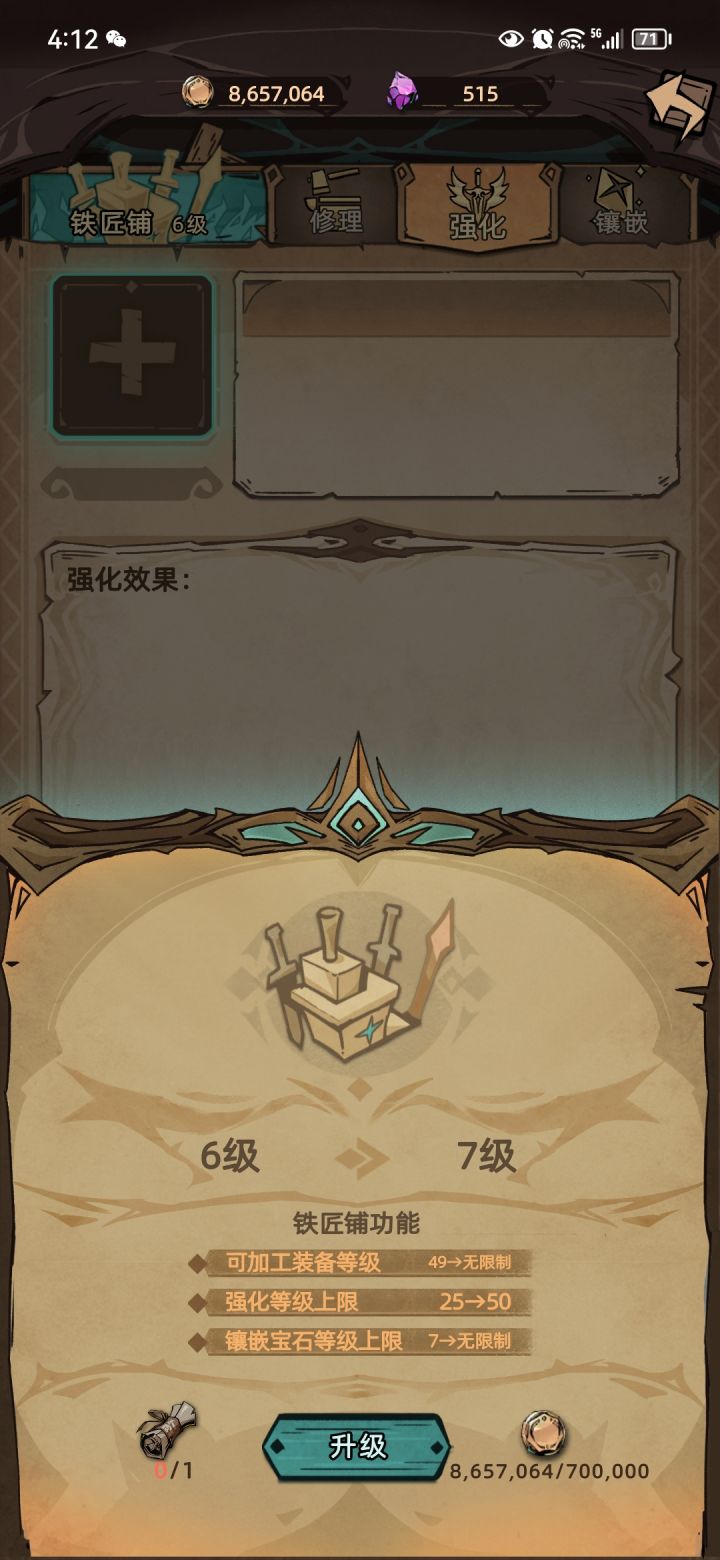任务全部完成了,铁匠铺升级券没有。怎么50级的装备强化不了啊