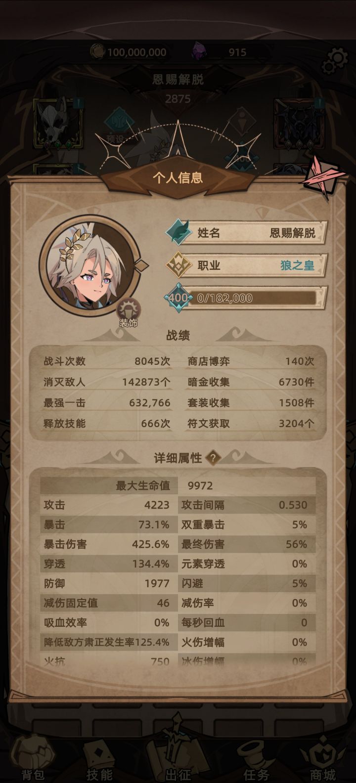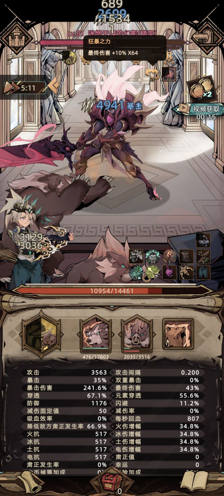 先上建议:第一召唤物可以有元素塔的加成 只需要普攻变成元素伤害就够了;第二人物太脆了即便是分摊伤害身板也是脆,怪物不是打宝宝是打人稍微加强一点人物防御端能多抗揍几下残血反杀都可以。在吐槽几句,正常的三狼套凑够了穿透 肃正伤害没啥问题(看起来)对比法师 冰法普攻直接aoe 2000面板能打10w 我狼4500面板能打9w 而且身板和法师一样脆 我防具全11防御连2000都不到 1w血左右抗都抗不住