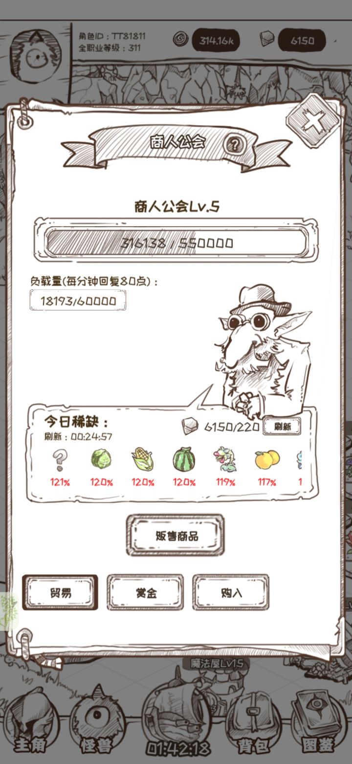 游戏20号将上线tap,游戏目前为删档测试,后续还有会有很多改动,简单的讲一下游戏如何快速挣钱,发育,全程无烦恼收菜。1.商人公会商人工会肯定是金币最多的来源点没有之一,首先商人公会不要浪费太多负载量(物品出售的数量上限)去卖一些不值钱的东西,只卖花🌸,卖东西可以看出物品的本身价值与升值贬值,正常情况下肯定是优先升值或等价的情况下进行出售,达到资源最大化(也就是变红了就可以卖花🌸了),后面资源