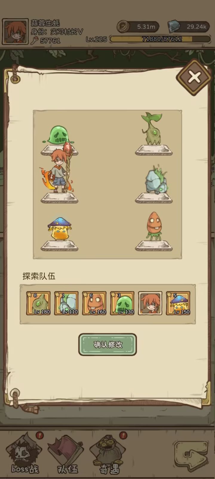 (图片已更新)目前主要是更新了一下技能加点,后续点上群体缠绕,对面基本前排动不了了。宠物目前带了星⭐级高的水元素(尽量选择两个远程宠物,三个近战宠物,因为怪物优先攻击近战宠物,所以可以把后排蘑菇吸引出来,站位如下图),也可以带其他的,⭐高就行,不然会完全没用