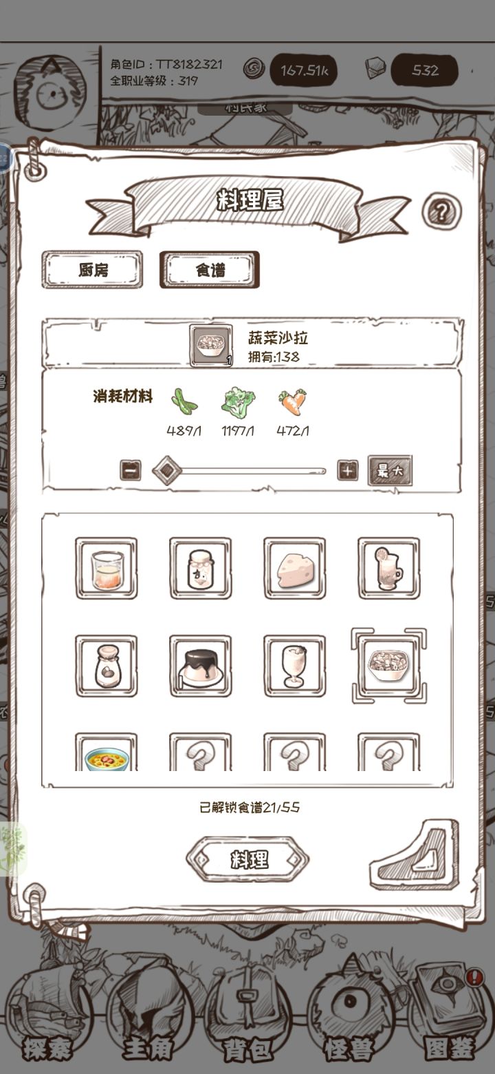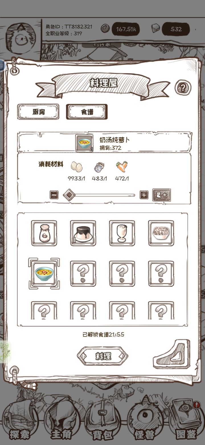 探索功能相较于一测版本我们做了一次比较大的调整1.首先,探索口粮中新增了三个乱炖品质【平平无奇的乱炖】【飘香四溢的乱炖】以及【金光闪闪的乱炖】新增的乱炖将从各种品质的食材制作出失败料理时会获得2.添加好食物以及上阵怪兽之后即可点击开始进行探索3.探索开始后,如果想要加快探索的进度则可以点击时间右边的加速按钮,选择当前地图加速和全图加速,加速后即可获得对应的奖励4.探索中还可以触发奇遇事件,