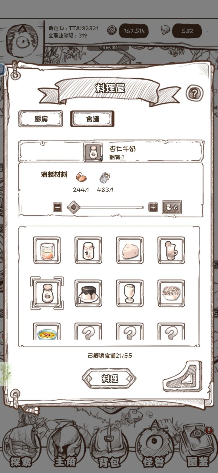 争夺食物偷袭左边的 经验+200 普通肉+10偷袭右边的 经验+200 普通肉+10我全都要 经验+100 普通肉+5地洞壮着胆子前去查看 冬虫夏草+1此地不宜久留 木材+1000让怪兽去探索 普通肉+1打劫和她讲道理 经验+100 金币-10k直接开溜 经验+200 金币+1为民除害 经验+100 钻石+10路边奇遇一探究竟 蘑菇+5保持警惕 经验+100狡兔三窟喂