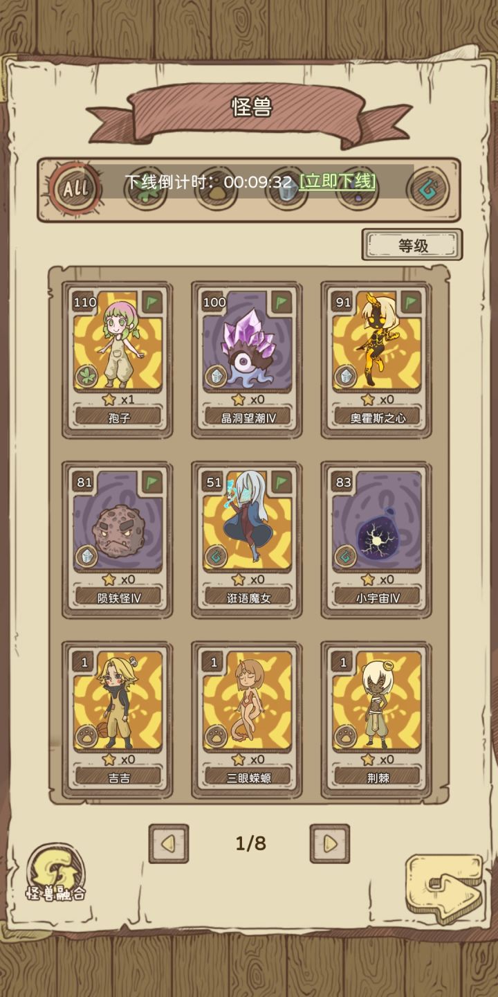 1、看广告加时间的功能,放到“恰饭了”。建议类似的,看广告加道具、碎片、能量等,全都放一块得了,摆明了就是恰饭,愿者上钩。2、新出的职业大厅,设定职业才加额外属性,这不离谱吗?这意义何在,后续有大动作、新玩法?建议改为直接加3、新增秋雅小屋,就是为了让我对话时多点一下,操作、UI很别扭。皮肤碎片,见第1条建议。4、重要的,关于怪兽合成、升星,后期怪兽数量爆炸。我有一个思路,依旧升星,多余的