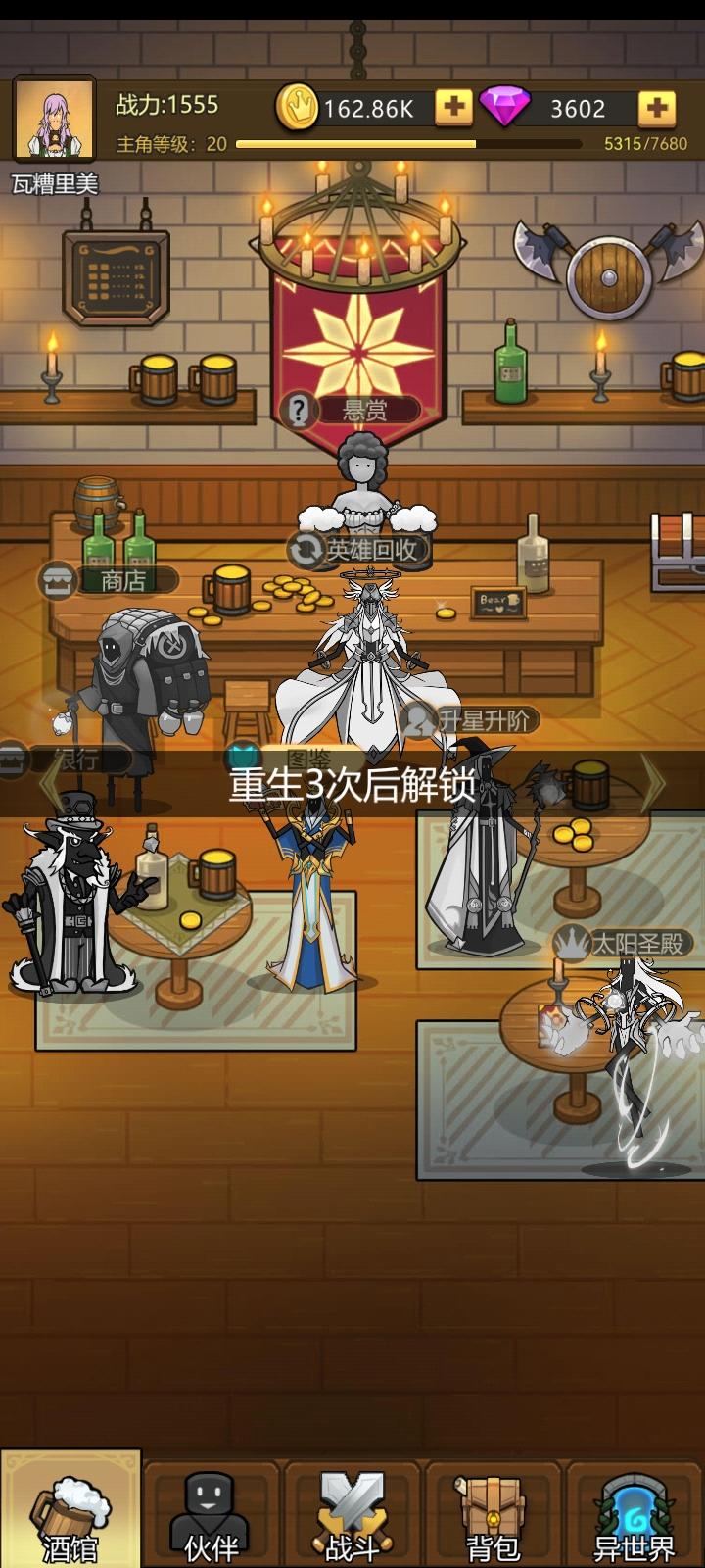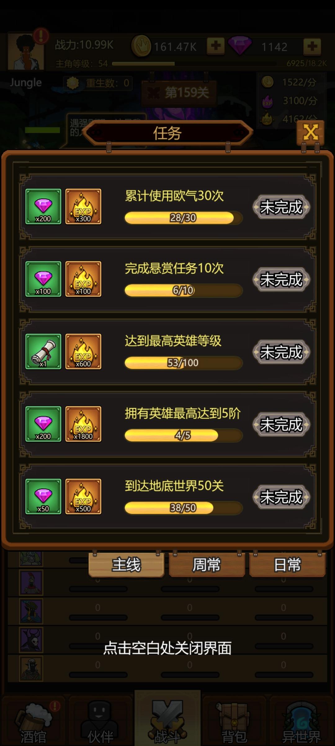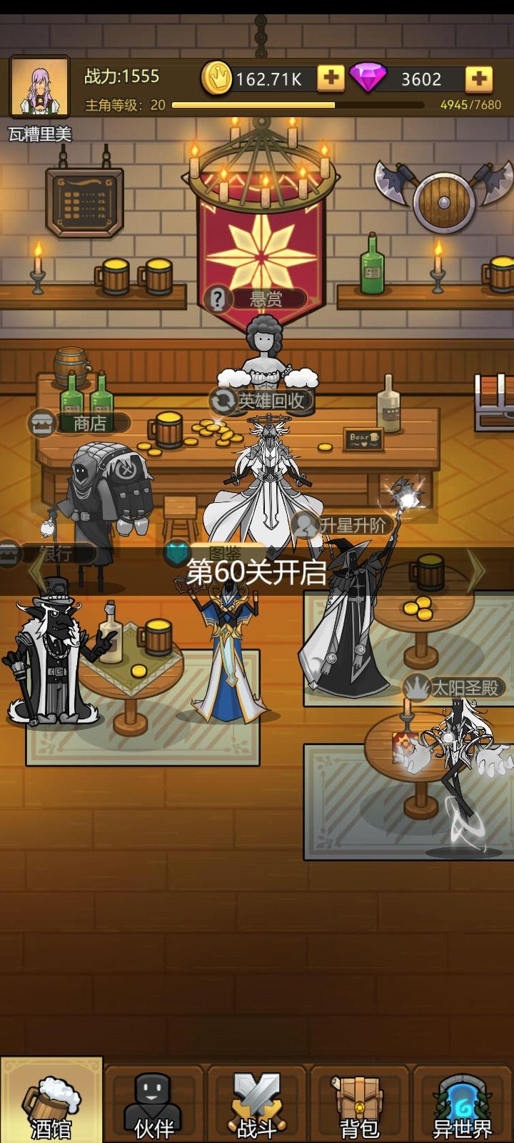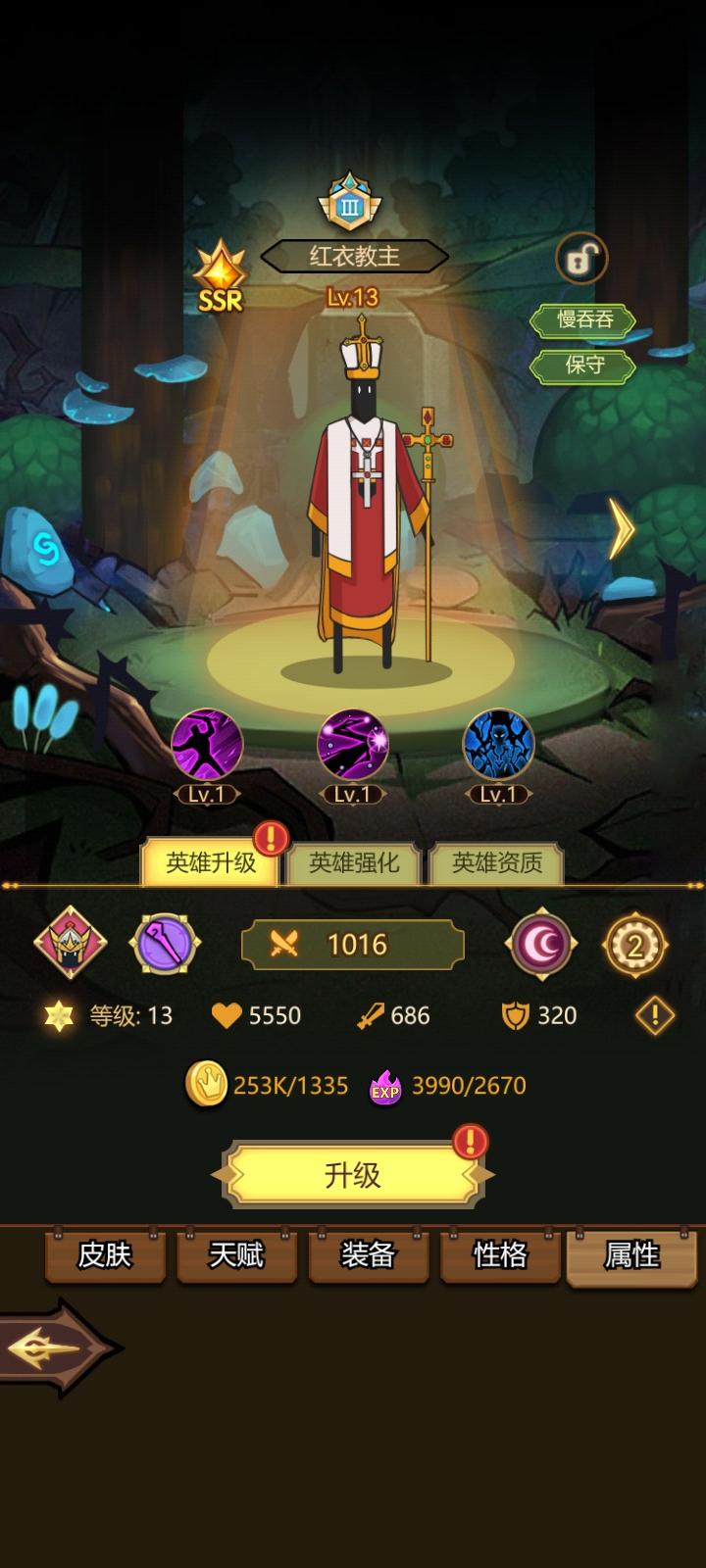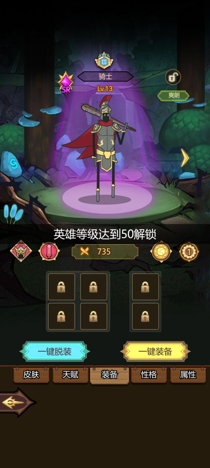 10.31 11:20抽到ssr了,红衣主教,升到13级直接打到50关,目前就像拉稀一样通畅,51关过了才能领挂机收益,领了直接飞升,好起来了。下面是原帖。----------------------------------------一个问题,开局给这么多装备却不能穿。英雄50级才开第一个装备格,前期巨难受,经验攒不起来,50级似乎遥遥无期,关卡过不去,背包里一堆装备看着就难受。一堆东西都要到60关以后才开启,然而我40关就卡关了。。。