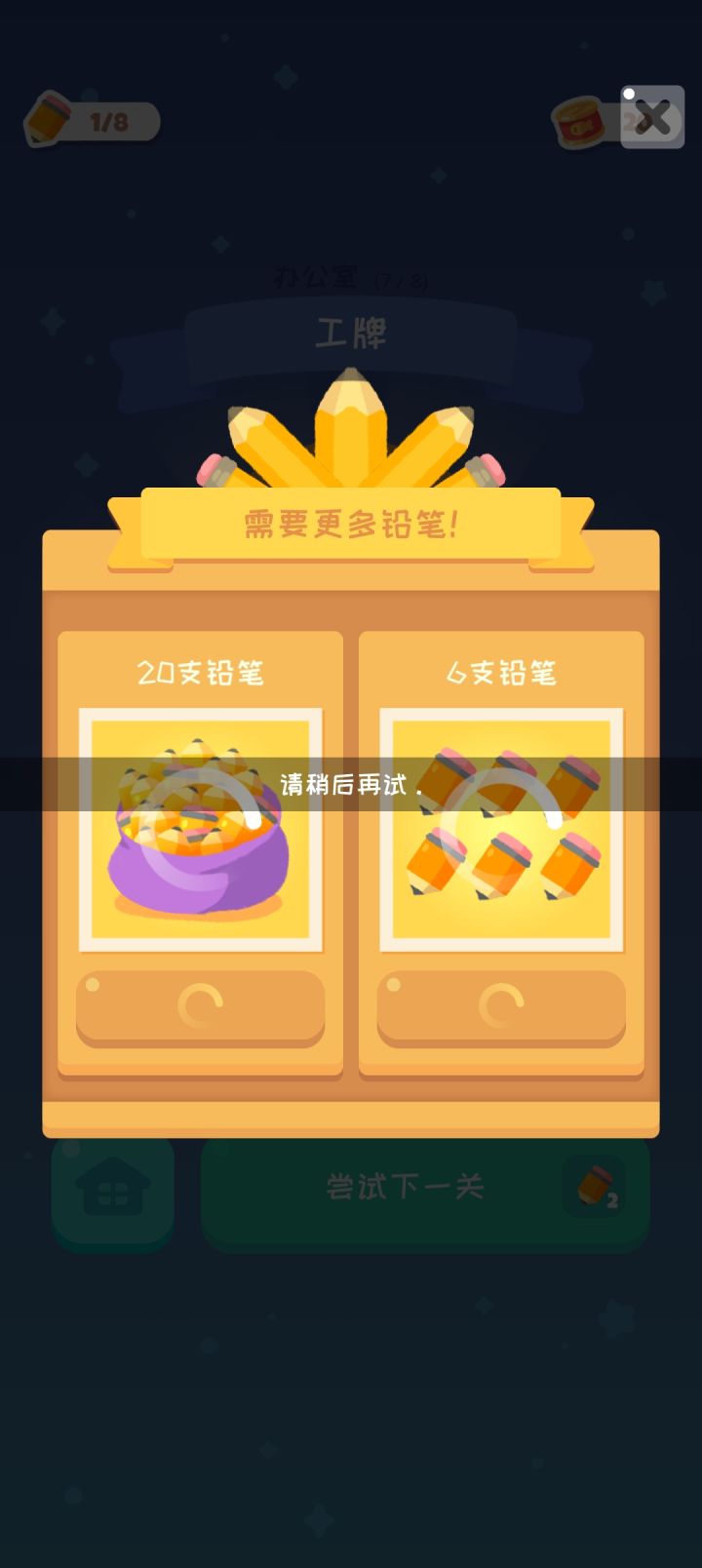 连续看两个广告获得20个铅笔,看了一个第二个一直让重试,为什么啊!!!!