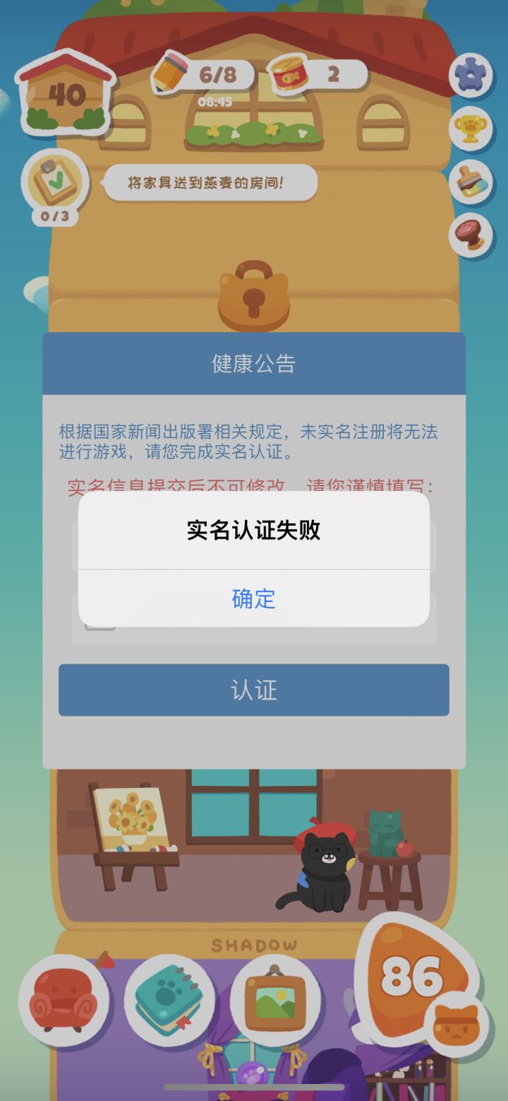 实名制认证这是几个意思,切换网络,重启游戏都没用,上午玩都没这个,下午玩就有了,还一直失败,望修复。