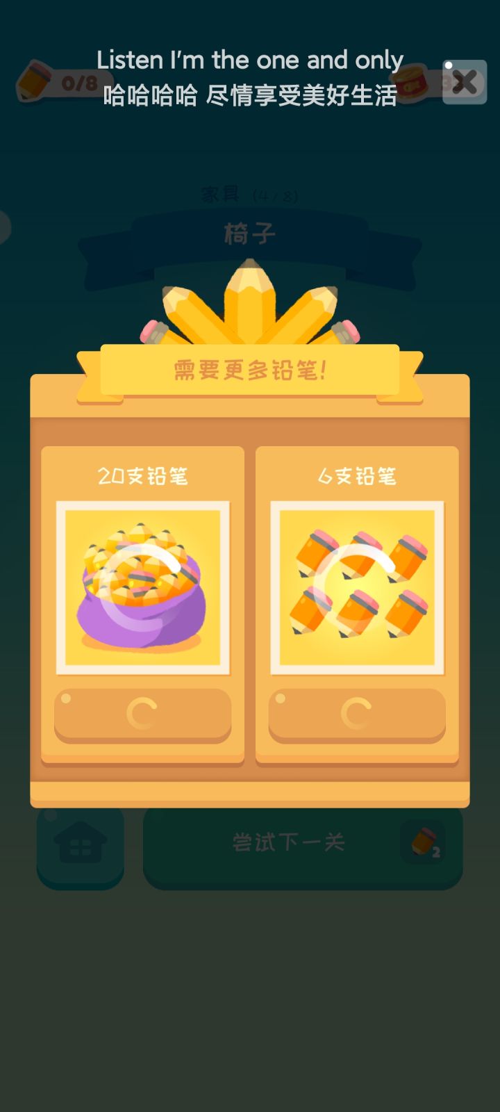 获得20支铅笔的广告看完第一个提示没有广告可看