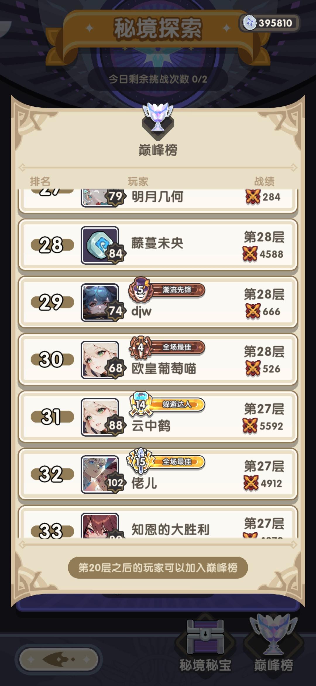 太难受了,不能结算后一直拥有称号那也就这一天的称号体验券在榜唯一一个70级以下的,太难了