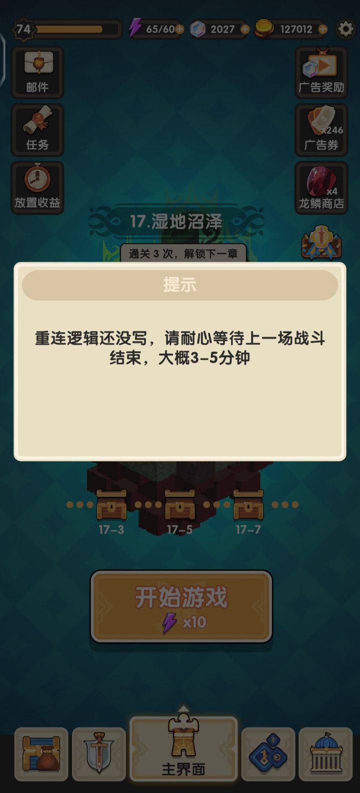 组队模式,队友卡了,然后我重启游戏。现在玩不了了