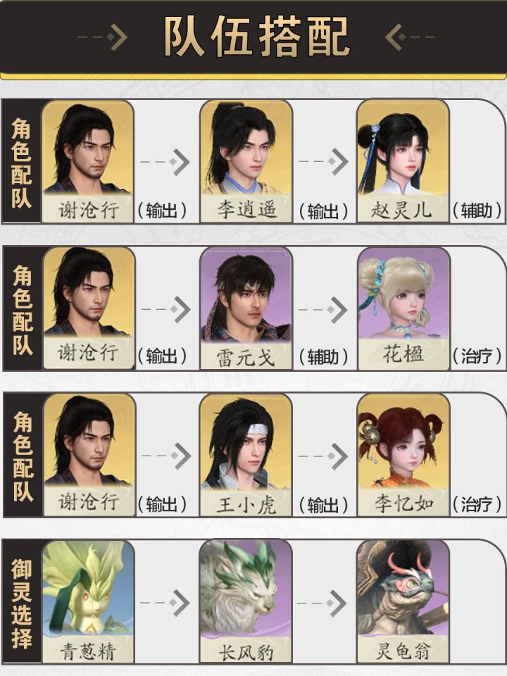 在《仙剑世界》中,合理的队伍搭配能够极大提升战斗效率,尤其是在新手开荒阶段,选择易获取且契合五灵机制的角色可以帮助玩家更顺利度过前期成长阶段。本攻略围绕单人大世界探索与单人副本两大核心玩法,推荐多个适用于新手的阵容。一、配队思路 本次推荐的队伍偏向于新手友好型阵容,选择的角色获取相对容易,并结合五灵机制、技能衔接和生存能力进行搭配,具体思路如下:• 五灵诧变与五灵相生:不同属性的组合可触发强