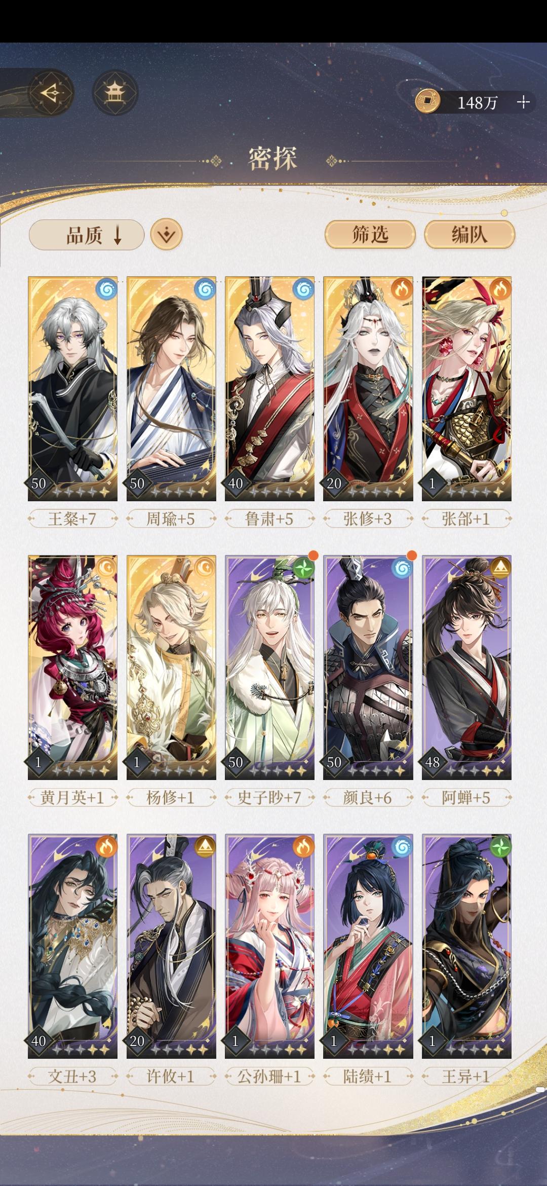 懒得看分析的话,就看第一页就行。星石组合目前只有六种,在最后一页末尾。一般一开始没有多少星石,可以养几套30级的紫星石,然后慢慢用橙星去替。抽到橙星可以直接喂相同的紫星,紫星只养到30级(不要突破30级)的话,喂着不算很心疼。没有武曲/天机/破军(限时池),武曲/天机/破军的位置用太阳/七杀替。有王粲荀彧中的一个,或者都有,就只用养一套盾的星石(紫薇天相巨门)。都没有一般用双盾阵容,就养