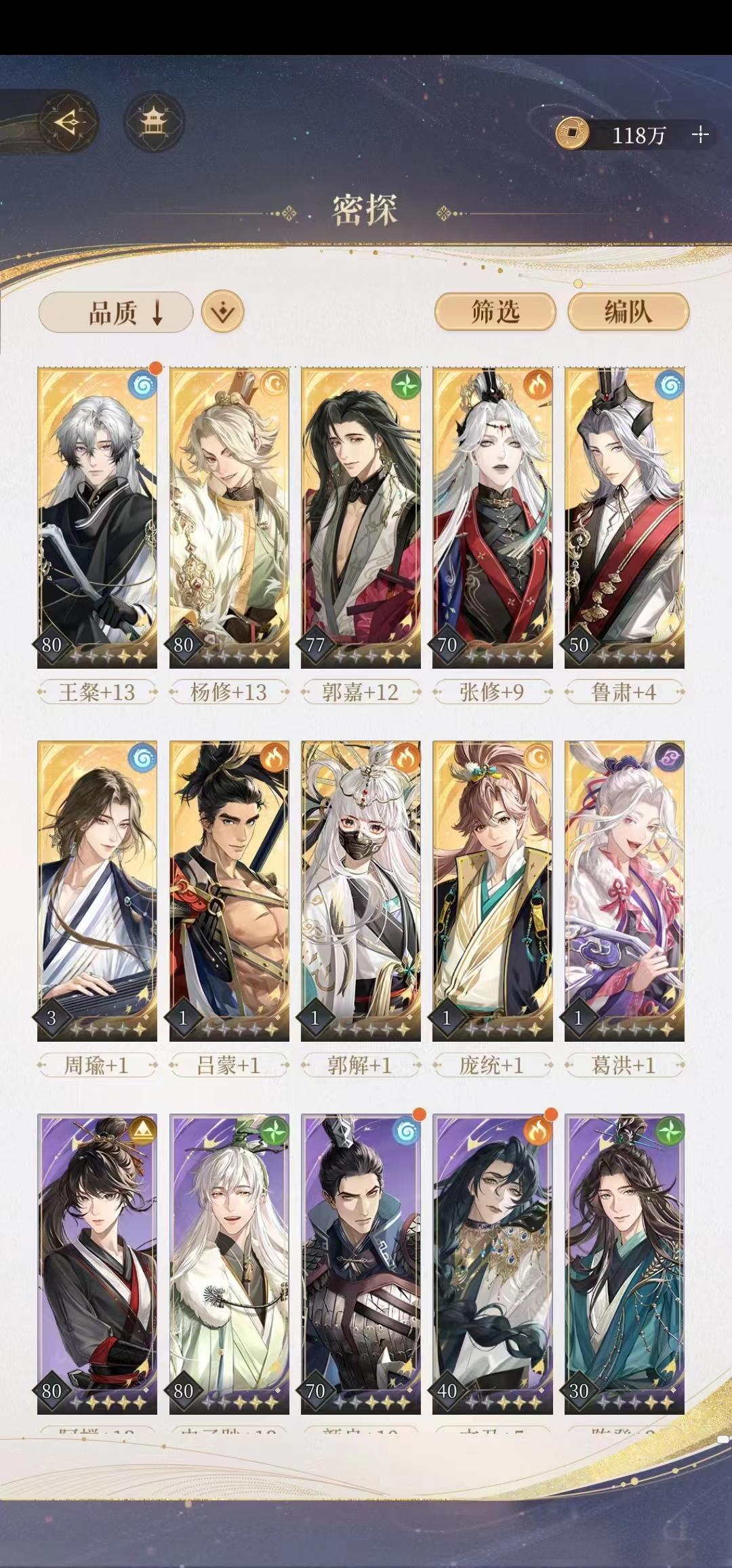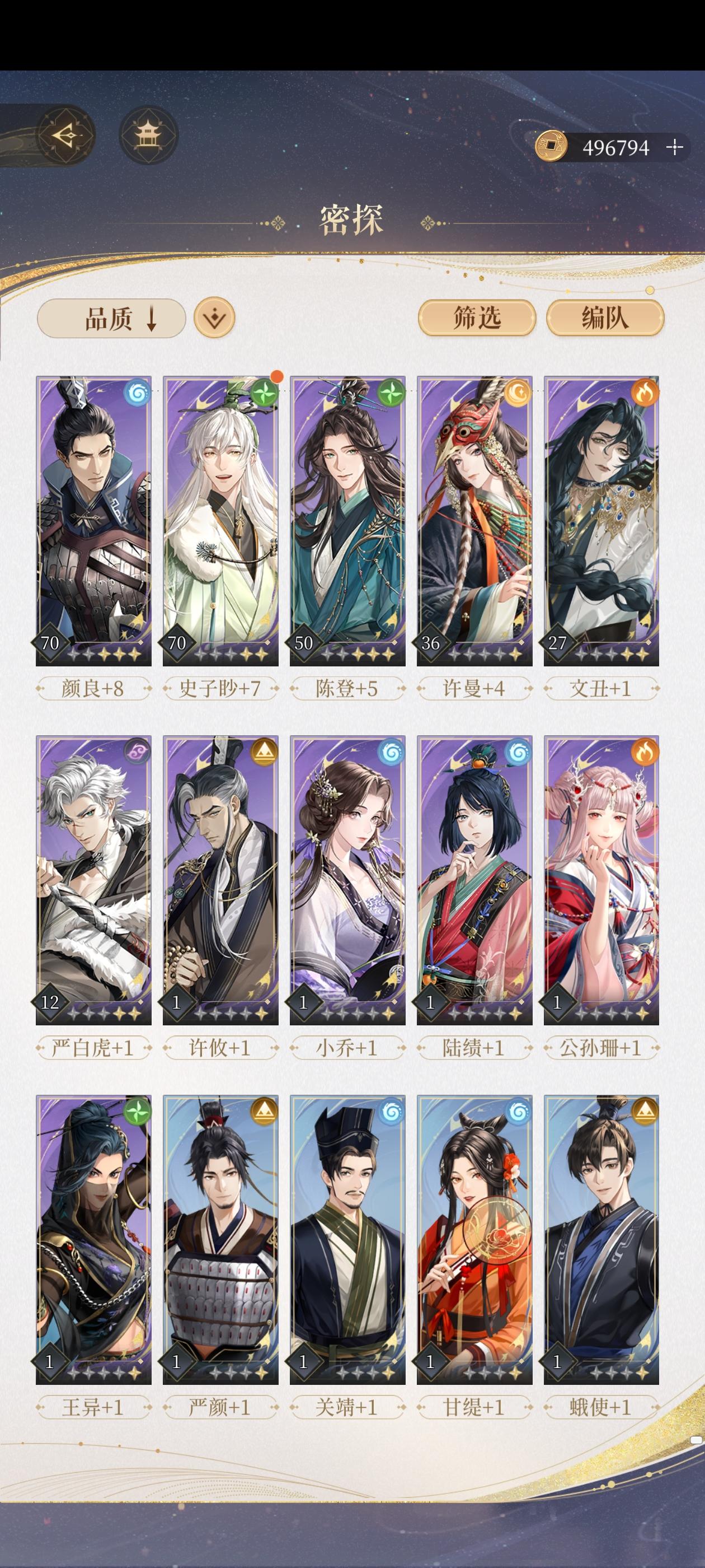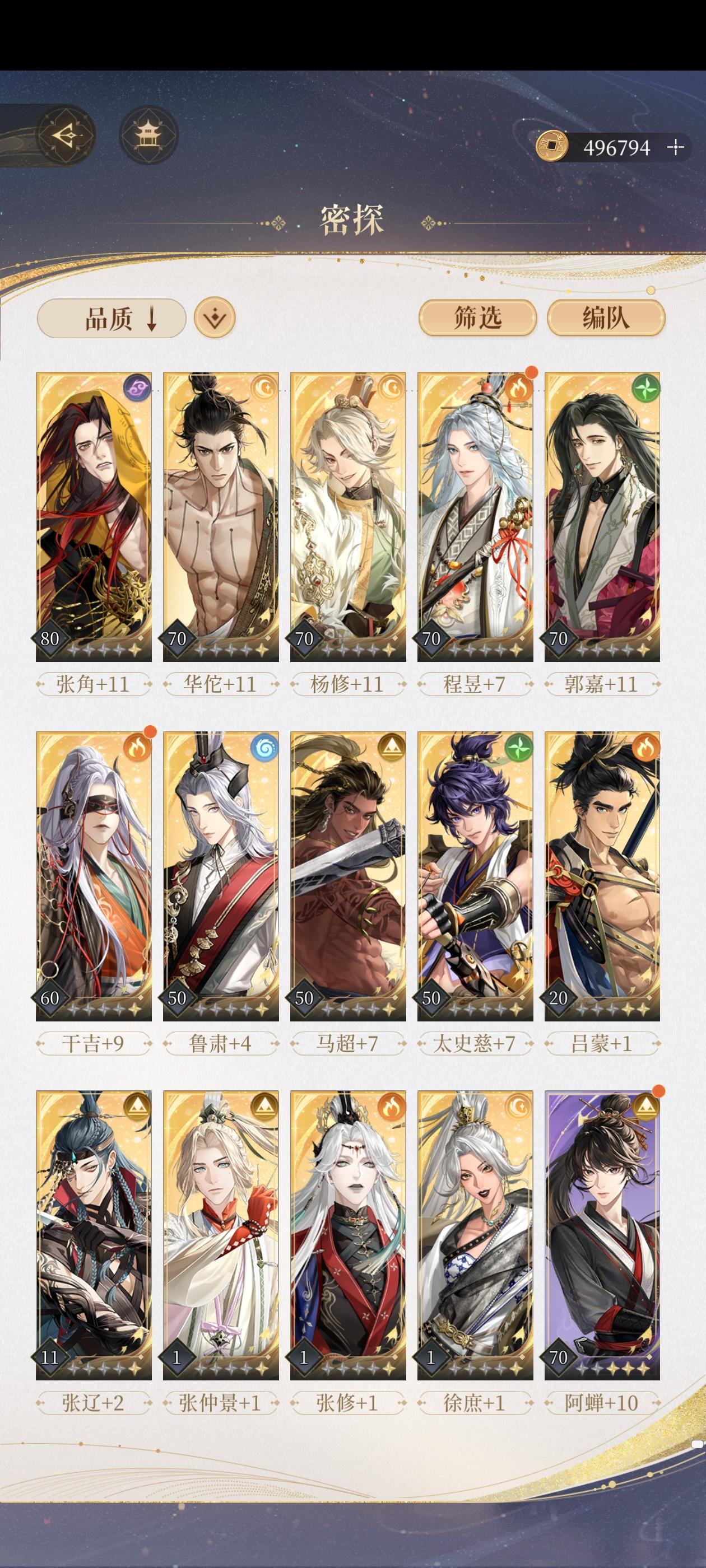 个人拙见哈。目前入坑第四天卡在4-11。本来看论坛里的大佬建议在3-8之前磨几天(事后看到),很懊悔……但重建洛阳以后真香了,派遣能刷到不少小鸟吃食,这两天刷到两次茱萸,有些情报也可以解锁角色信赖值,总体而言我感觉还是赚的。其实只要等级达到20级,练度尚可都可以考虑继续,不用观望太久~不过我目前只有刘辩的小纸片人儿,不知道哪关过了能相见互动以下是我个人练度参考,吕蒙是刚抽的还没用过