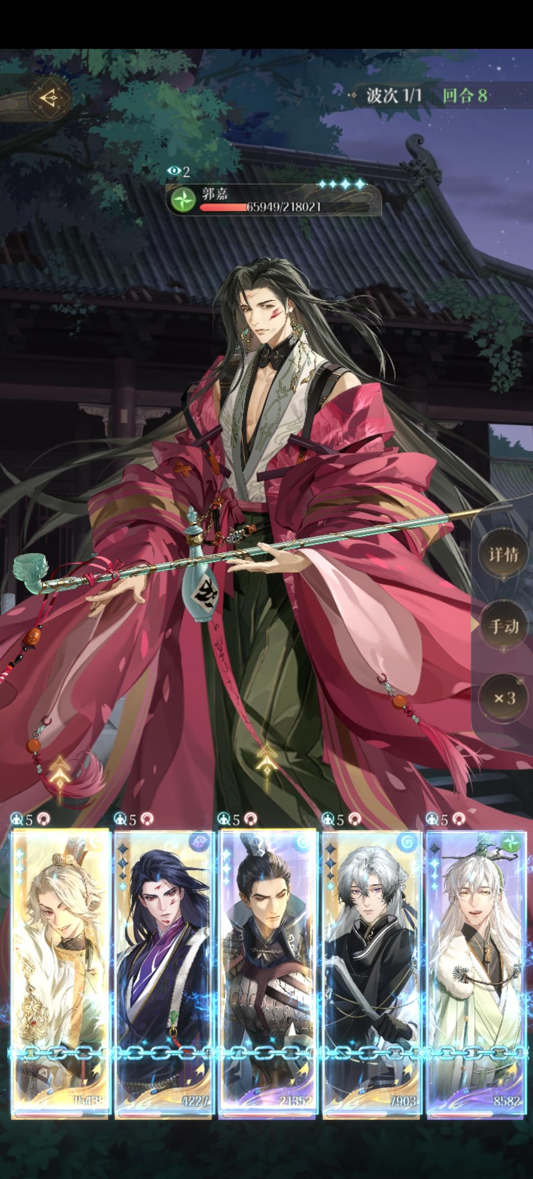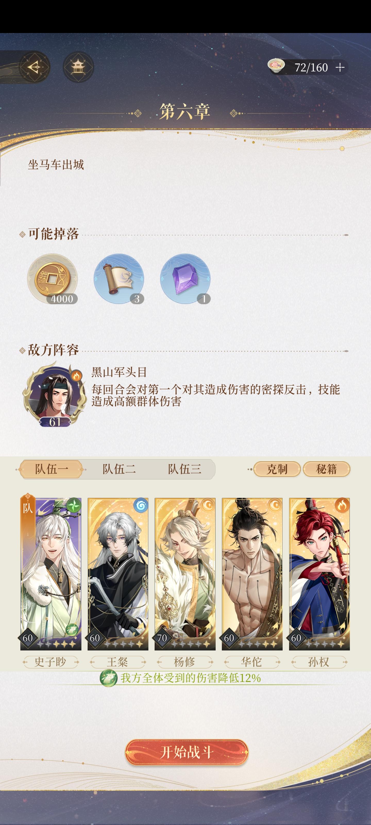 图三是练度,杨修命盘有初始能量加二,陈登也是,颜良命盘攻击回血,第一局赌杨修开双数(双五往上,别的不行),没有双数就重开,我重开了十几次才摇到双六,然后颜良在怪要开大的前一关开大,抵伤害,我这边鲁肃是一个人都没劝退的(╥ω╥`) ,不过不劝退也稳过