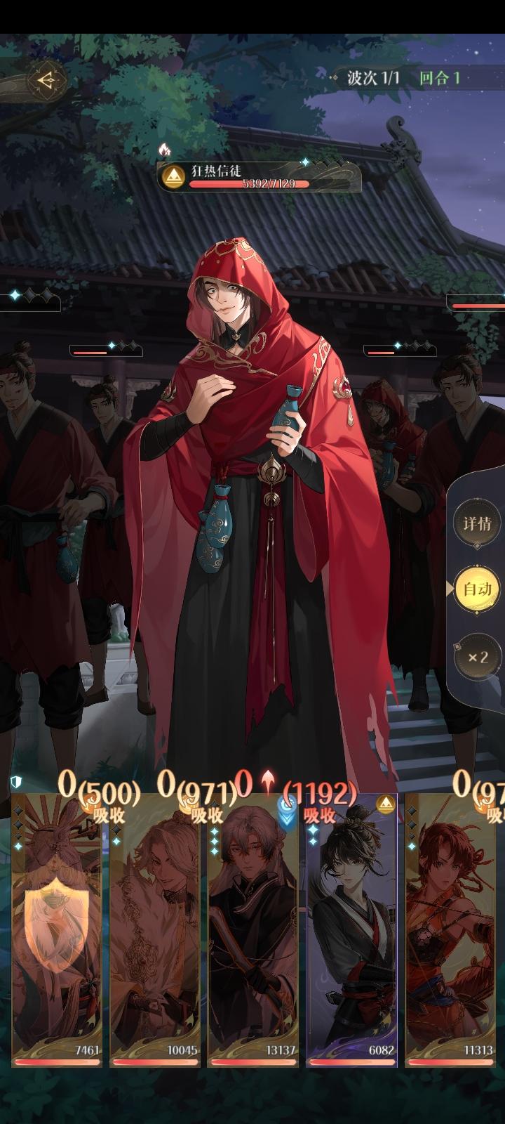 8-24阵容如图,前期boss普攻的时候权子不用防御,放大的时候防御一下,攒够六把剑就开始全程防御,直到最后全员存活且香修残血,这时候权子就可以放大了,我这个练度还是要赌一赌暴击对子的,粲良练度要是更高当然更稳一点第九回合粲别放大,留着第10回合再放,香和修残血boss又要放大的时候保一手,粲和良都放大,然后修大香防御保一手(因为大完下回合修就die了,差不多修大的时候权就能大了),下回合香大,