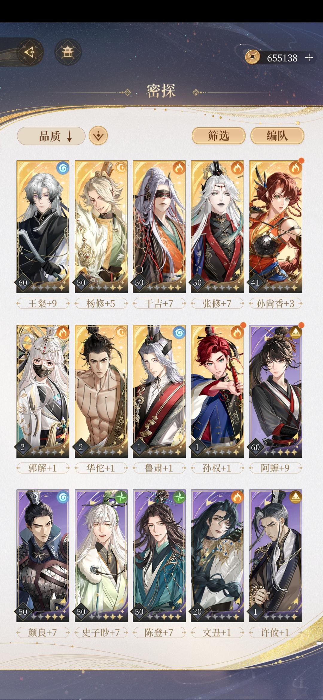 撒花,没有王粲我主线过的好艰难啊5-12之后的通关队伍练度如图