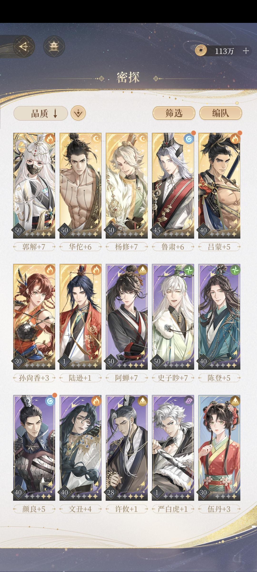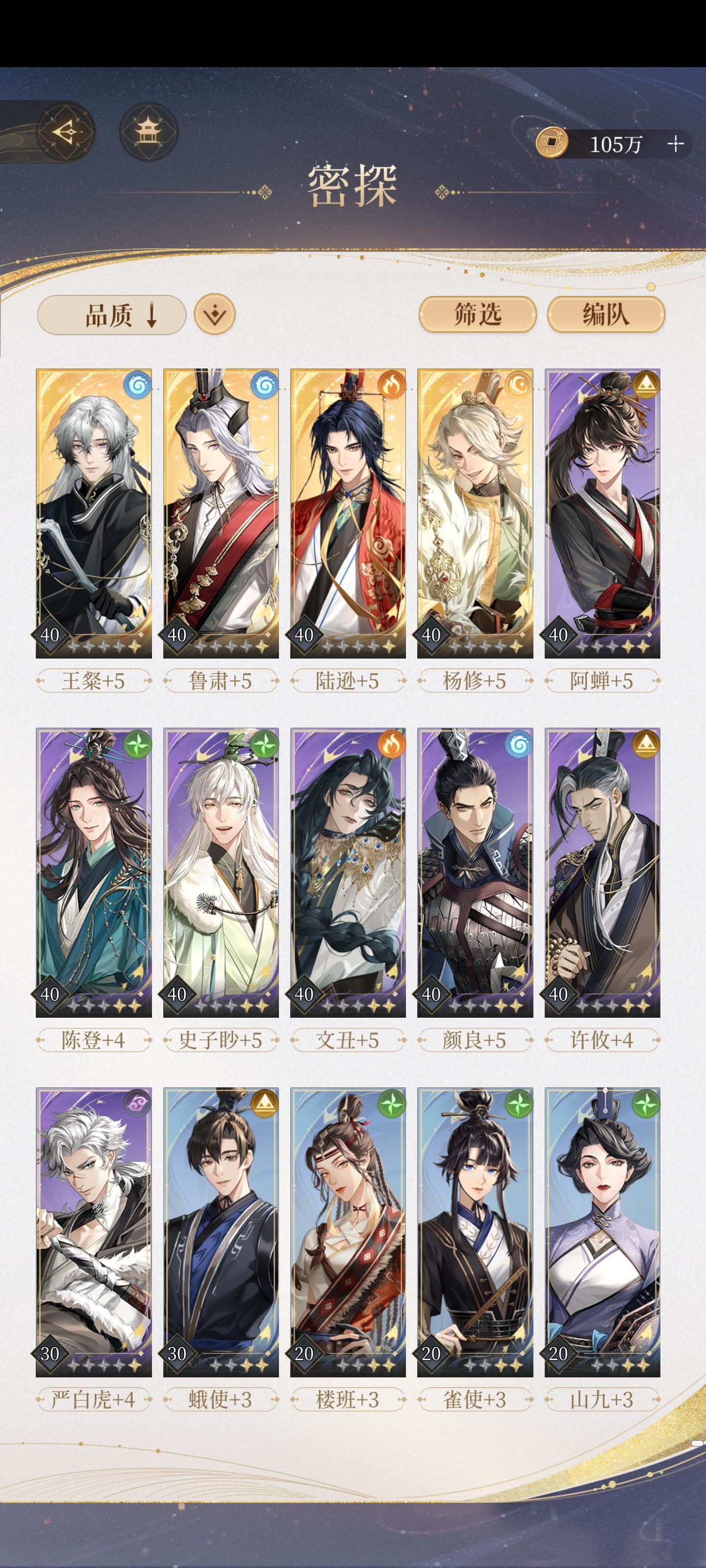 推兰台超级快,一般两回合结束。 有郭嘉贾诩的可以练起来~陈登当队长拉条,一定要抢在三回合内团灭对面。 阿婵上场,作为收割,一下子能收三四个哈。 不一定要带奶妈,这个阵容不需要盾,因为两三回合就结束啦。当然,过不了BOSS关,打打小怪还是很快的。比修子好用一些。