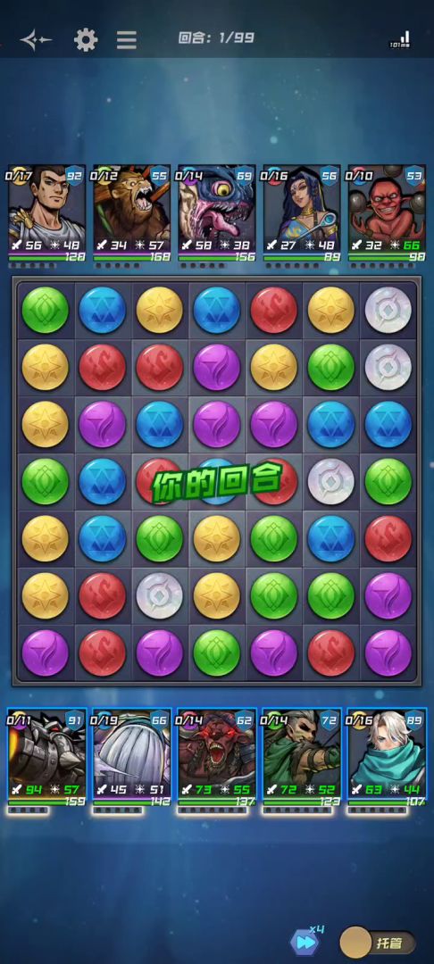 C位就是幽灵,配合右面两个辅助攻击一次可以恢复4点能量,幽灵发动技能攻击两次,一次就可以恢复8点,左面两个可以达一些消除类的英雄,后期基本上发动一次技能又会马上满能量,主要是c位幽灵攻击一次还能叠加伤害太bt了