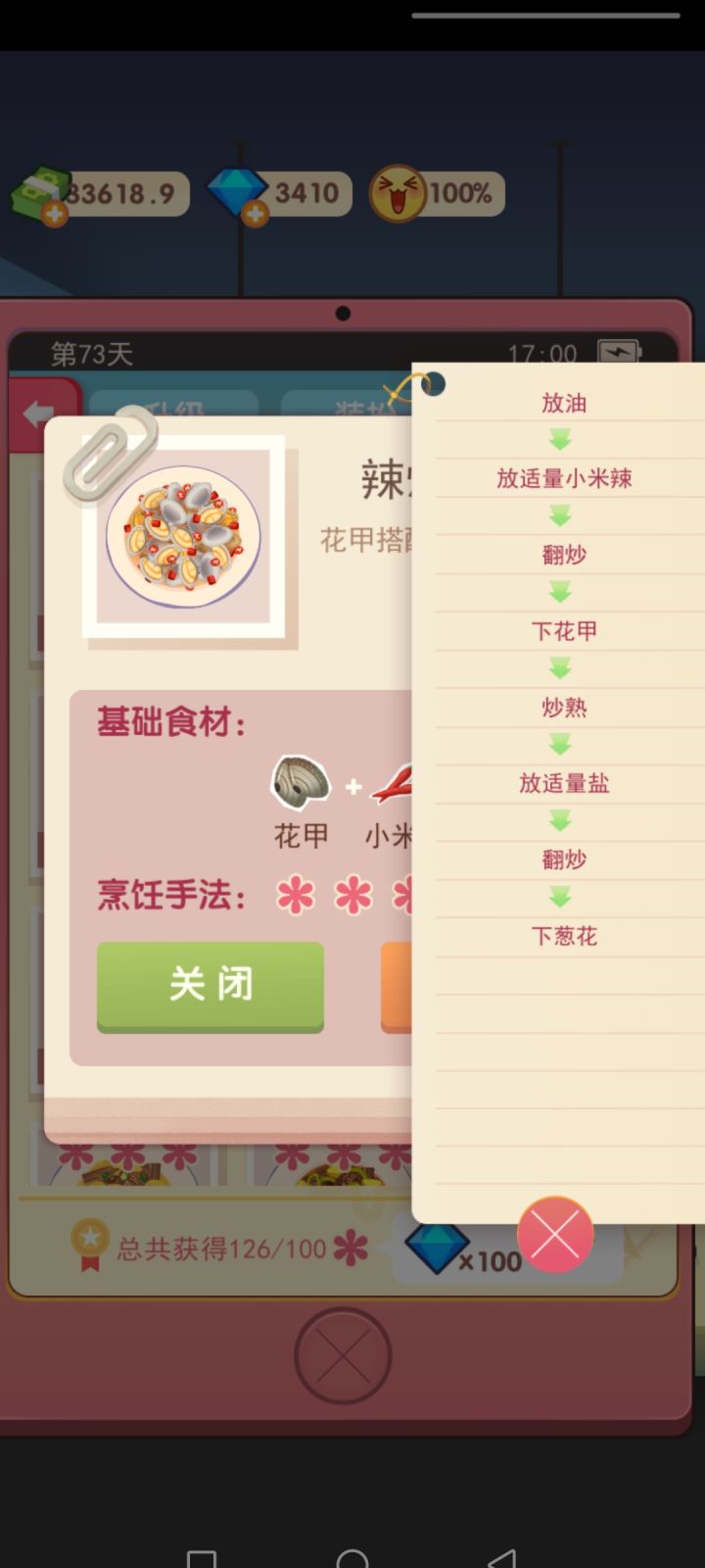 1-游戏开始前期二十几天不要着急买食材,几天买一个,比如你三天盈利了100,你就买一个,剩下的钱攒着。2-成就获得的钻石💎用在哪里?敲黑板!重点! !升级!升级!升级! 一定要开延长营业时间升级跟自动加料(延长营业时间好处:每天赚的钱会更多,星级大赛中可以获得更多的星星⭐拿到奖金。)(自动加料的好处:不是自动加调料,注意区分!自动加料放的是食材,都是最低的成本,但又不会让顾客觉得少,可以