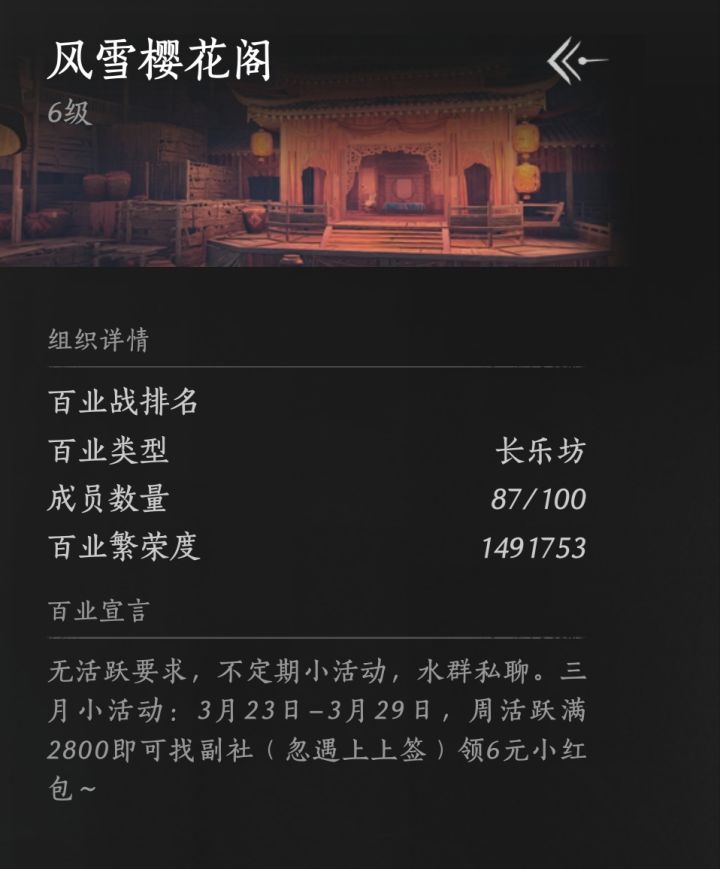 没有活跃度要求,每周能上线就可以了,会组织双十本还有爬塔,偶尔刀房,等级,造诣都没有要求,是喜欢燕云,长期玩的就可以了
