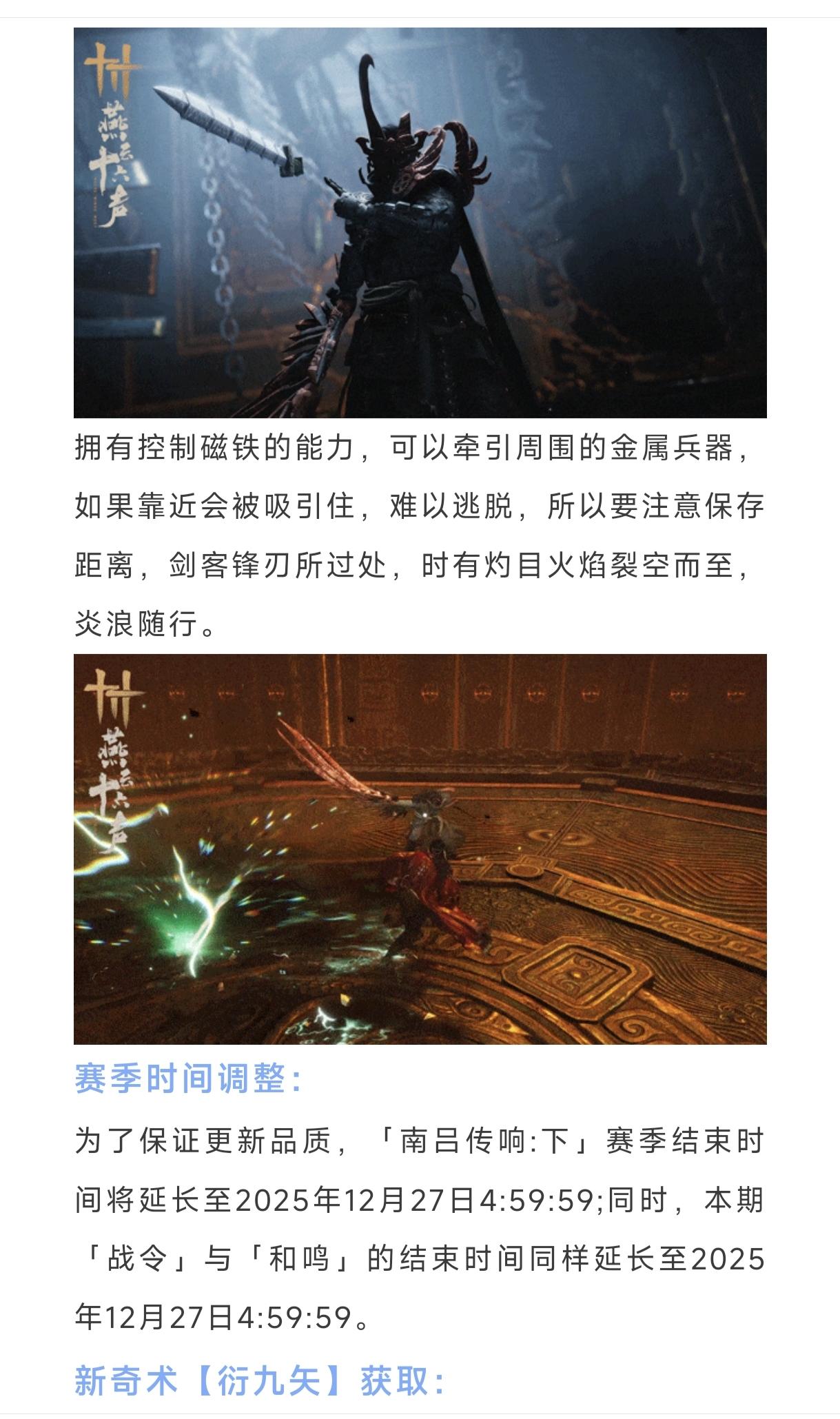 燕云十六声明天6块新奇术特效外观,新新增「衍九矢」奇术