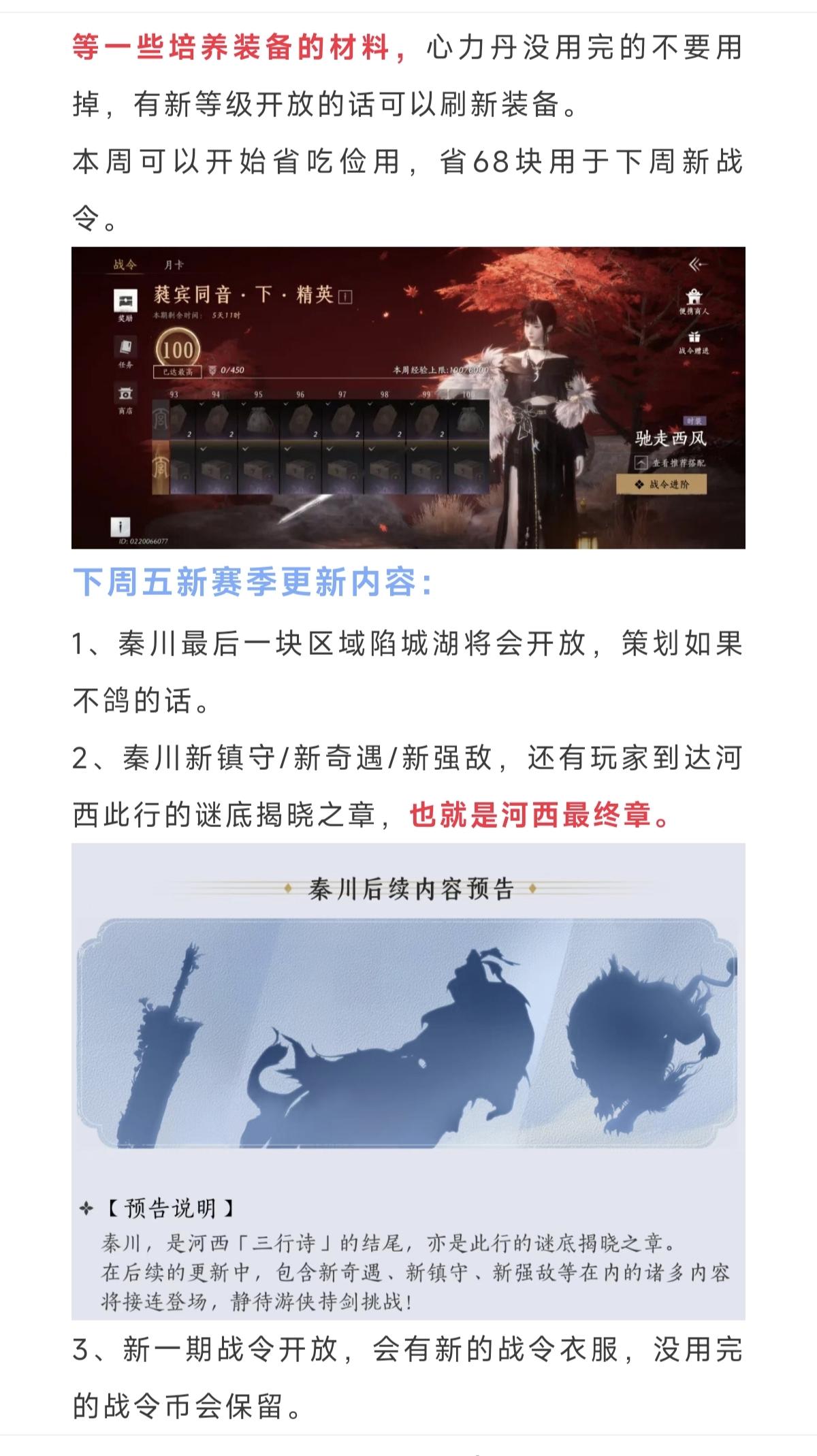 燕云十六声下周五新赛季更新内容提前看,秦川域陷城湖区域开放,秦川新镇守/新奇遇/新强敌,新一期战令开放,河西最终章剧情,,河西最终BOSS,河西最终结局,河西最终任务,河西最终章,河西最终章剧情,河西最终剧情,河西最终卷剧情,河西最终卷剧情,河西最终章,河西最后一章解锁,河西最终章剧情,河西最终BOSS是谁,河西最终BOSS,陷城湖什么时候开放,陷城湖怎么开启,陷城湖界碑怎么去,等待陷城湖区域开启