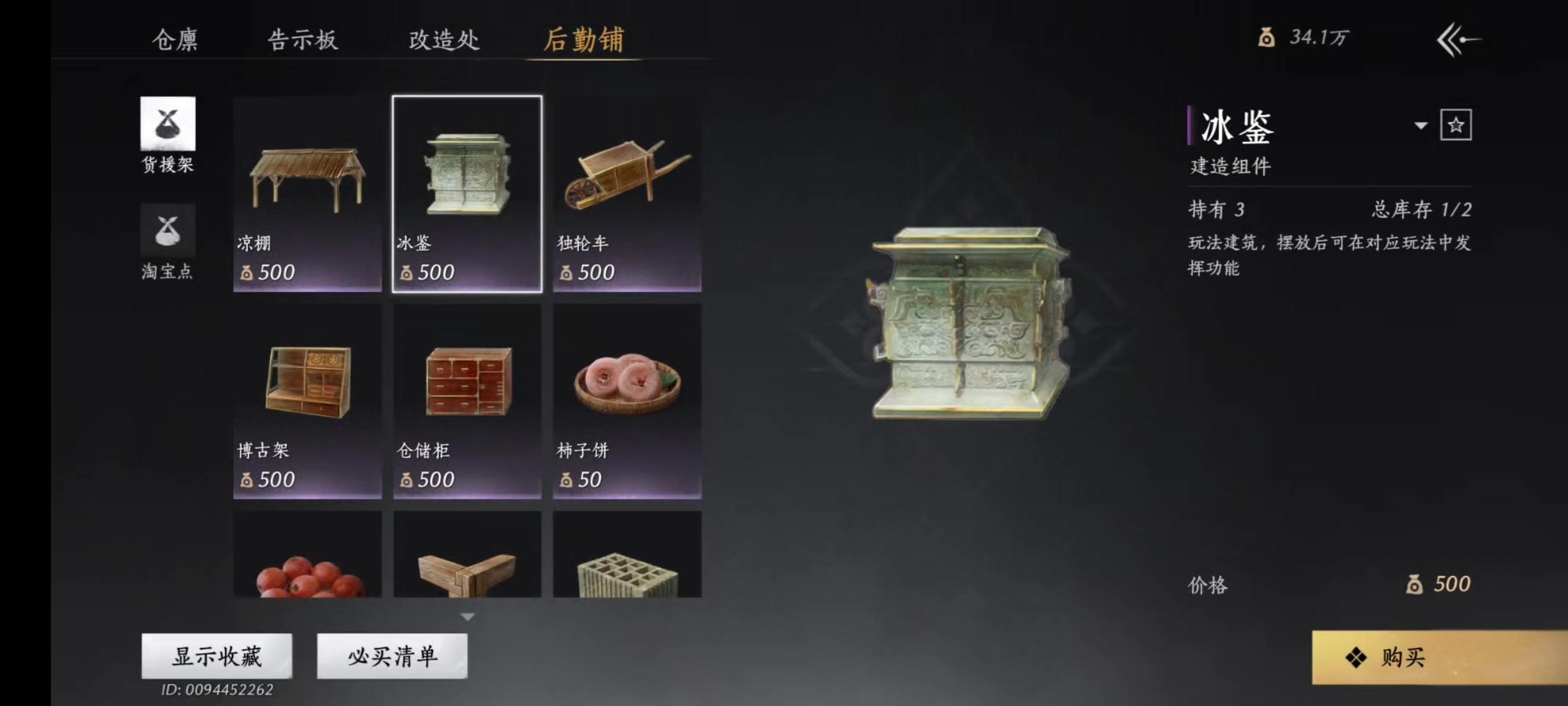 我有三个冰鉴,但做碧水云涛的鲮货郎任务时,建筑页面冰鉴没了。