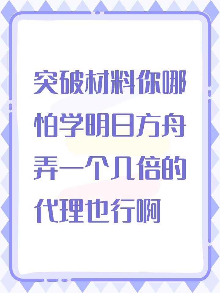 突破材料你哪怕学明日方舟弄一个几倍的代理也行啊 非要手动打 现在玩游戏的除了上班族就是学生党 谁有空跟你搁着一关一关的打材料 没有主游的命却有主游的病 不改只能祝褒姒ps 感觉似的会比归龙潮快