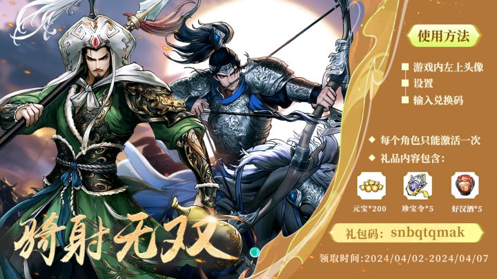 福利礼包 | 骑射无双活动今日开启,礼包大放送~