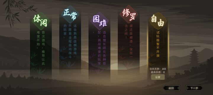 其实移动端自由难度是开放的,开启条件跟PC端一样打出真结局即可,目前移动端可以打出的真结局就新的旅程了。新的旅程就是开局一直不行动,过了5刻后就会有燕子窝援军救华青青,然后就会有一场战斗,战斗胜利后就会达成真结局新的旅程。问题是如何获得这场战斗的胜利,这边先假定是完成了所有成就,成就少一点点应该也无所谓。难度:休闲武学:拳法,拳法是单体伤害伤害高一些特征:动如脱兔,身如鬼魅,身先士卒,手脚
