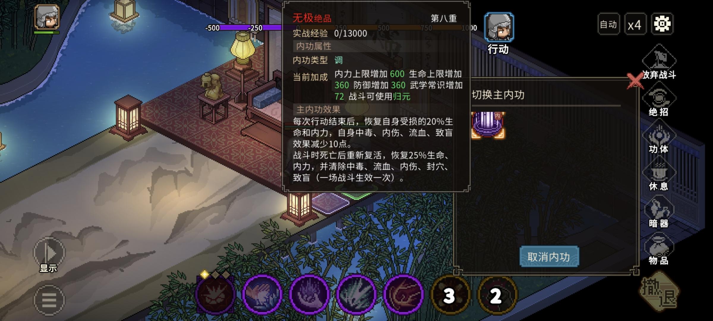 融合功法后的内功,在实战中 血与内力 在行动中不恢复了,有解决办法么。#游戏日常 #大侠立志传dlc