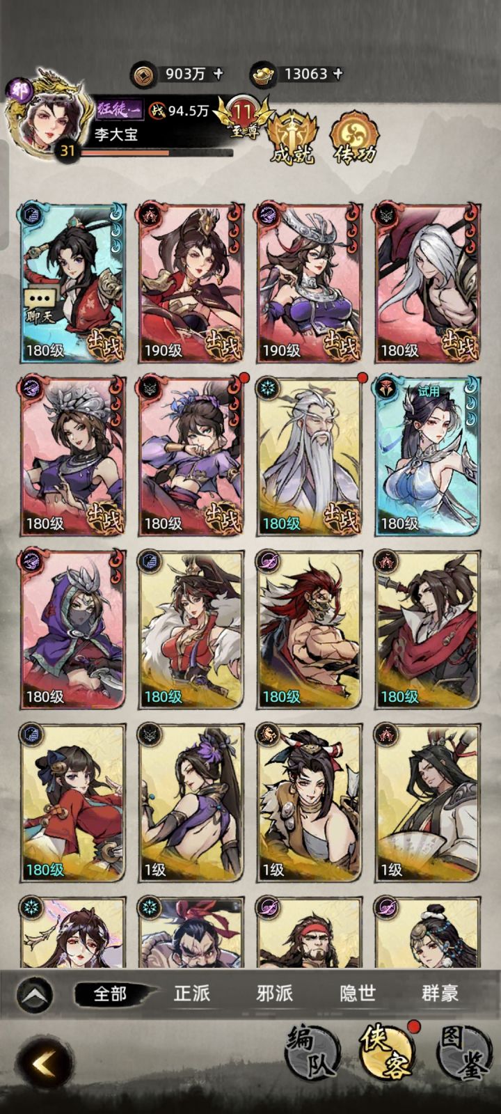 前言:纯阳官群里混了一段时间了,总结一些侠客简单介绍,帮助新人选择自己心仪的侠客阵容培养。其他玩法可以看 taptap 里其他帖子,比如那个《从入坑到弃坑》,写得很完善了。这里只介绍侠客相关,其他的先不搞了。———————————————————————————官方分类:角色分为 群豪、正、邪、隐世 四个阵营。正邪隐世每个阵营分为4个门派,一共12个门派。每个门派有4个极品侠客角色,